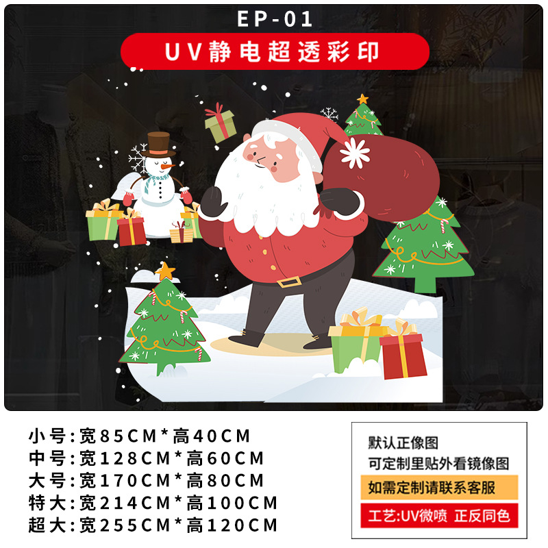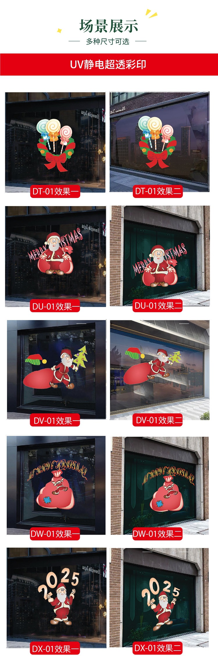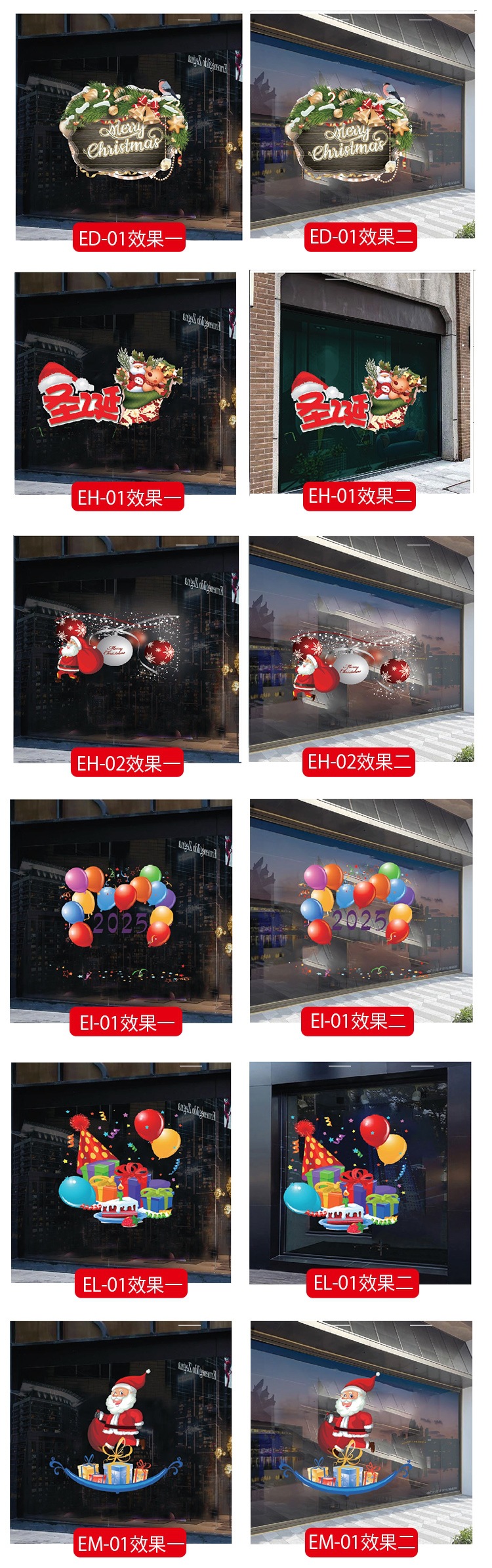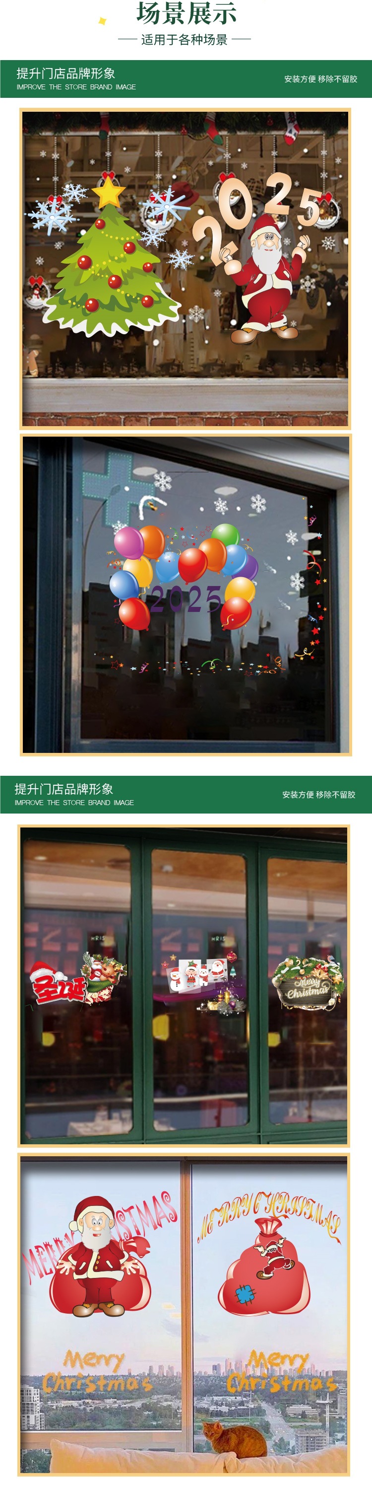 2025 크리스마스 장식 정전기 스티커 창 유리 스티커 상점 분위기 장면 레이아웃 창 스티커 산타 클로스스토어 가기