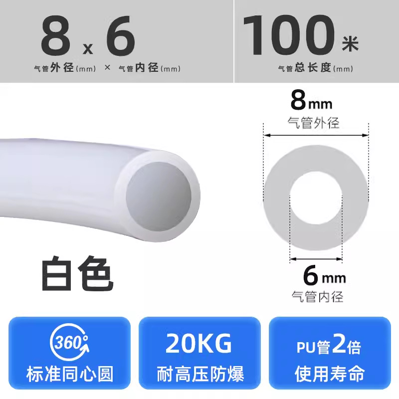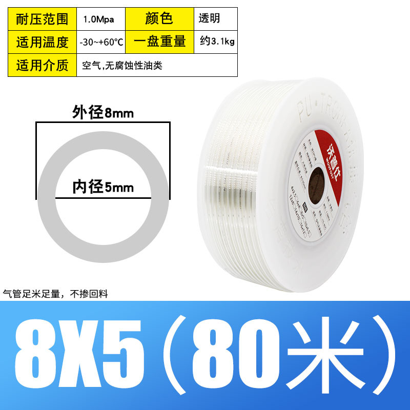 PU8 * 5 고압 공기 파이프 공기 압축기 대량 판매 공압 호스 외부 직경 8MM 공기 펌프 12/10*6.5/6*4*2.5스토어 가기