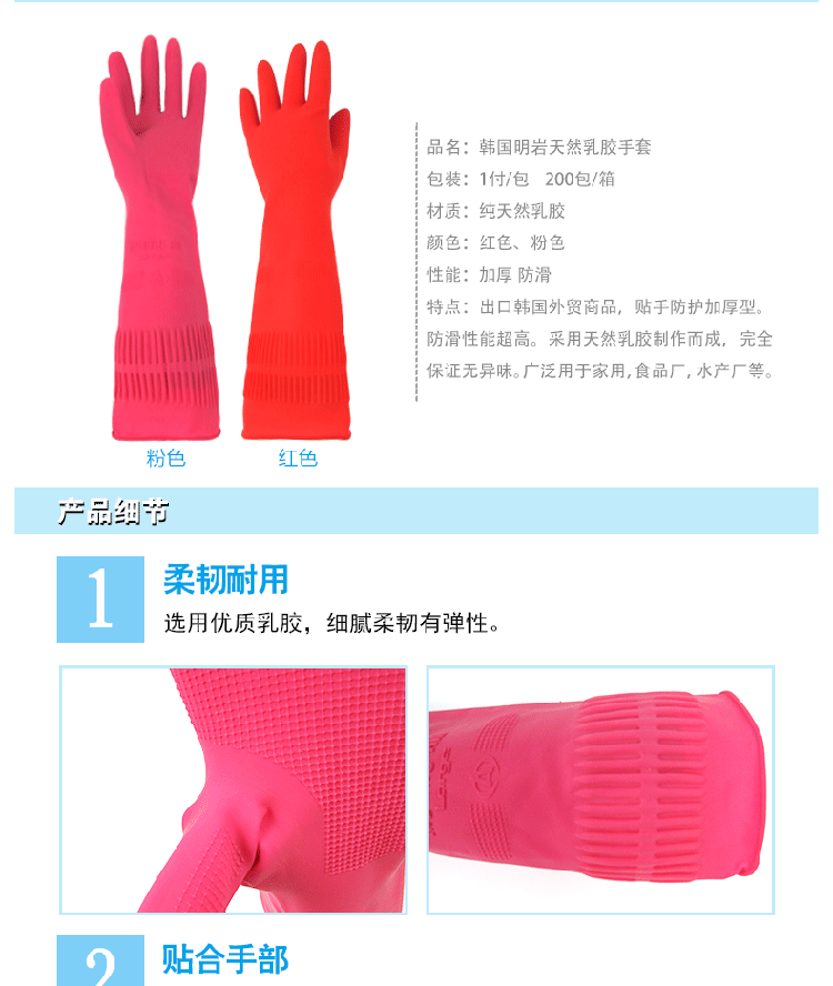 한국 Mingyan 천연 라텍스 장갑 주방 청소 및 세척 방수 및 오일 증거 고무 가구 여성 노동 보호 장갑스토어 가기