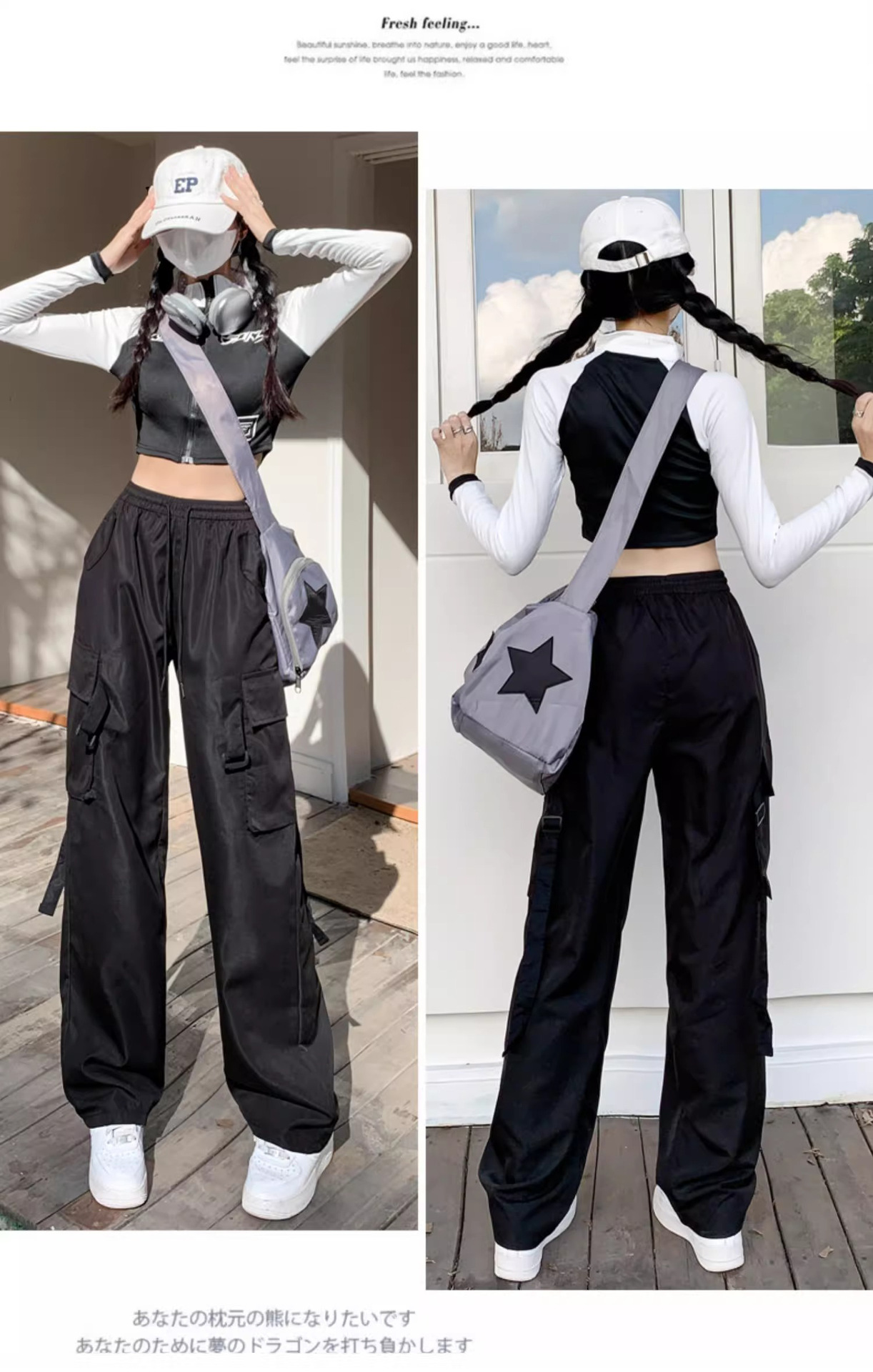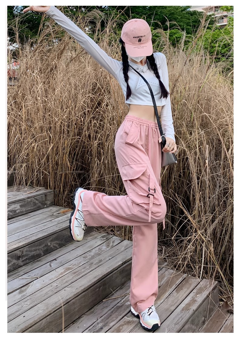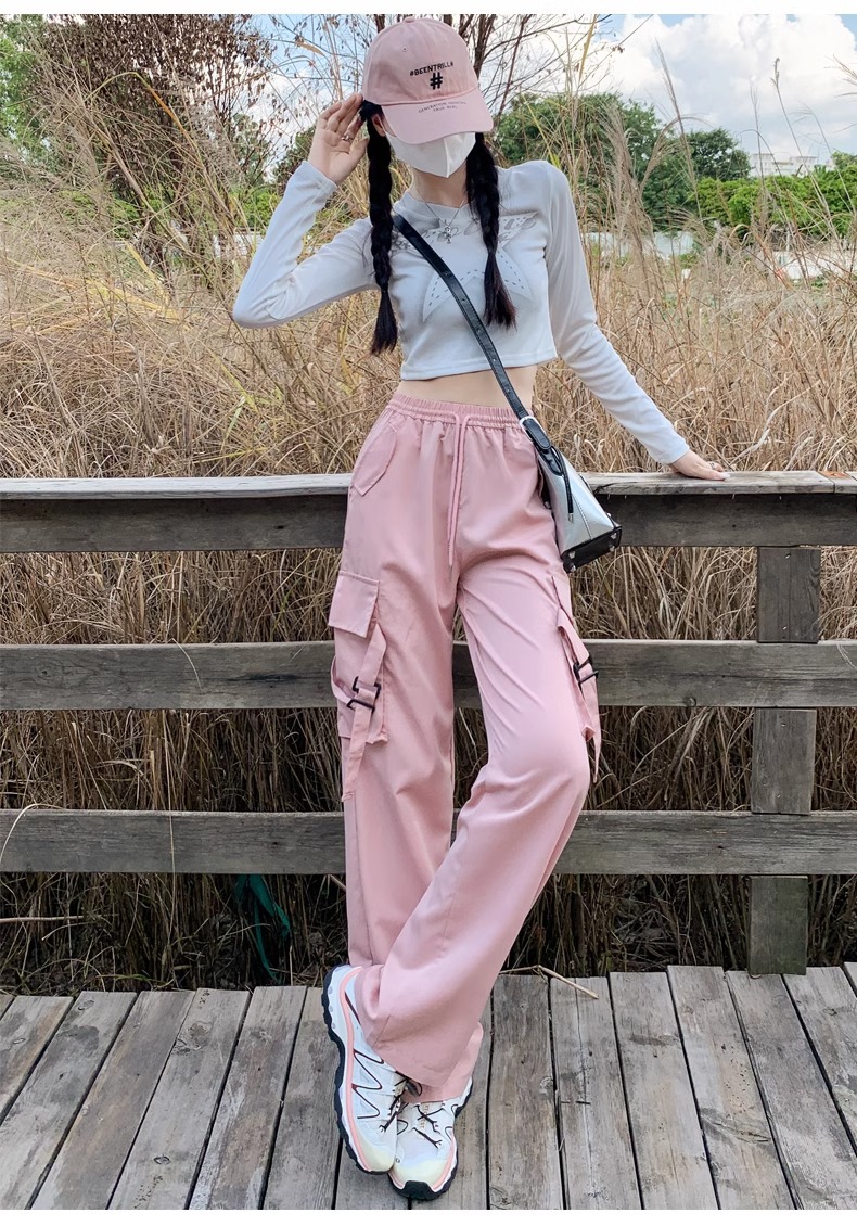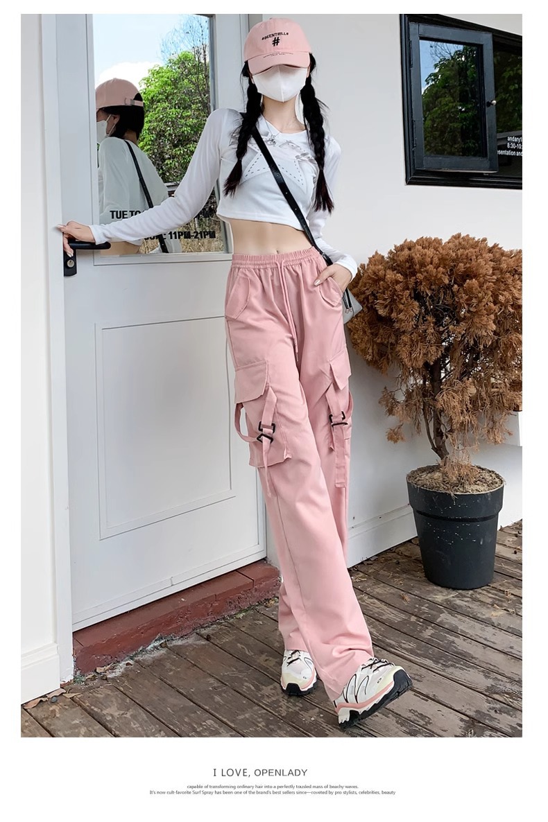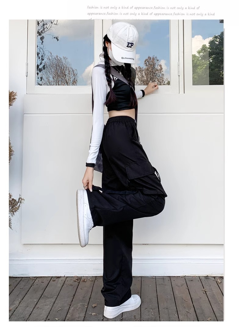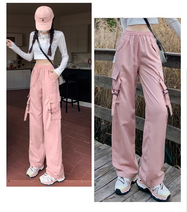 아메리칸 스타일 하이 스트리트 멀티 포켓 스포츠 작업복 바지 여성 봄과 가을 새로운 도착 탄성 허리 플러스 사이즈 드로스트링 등반 바지 캐주얼 바지스토어 가기