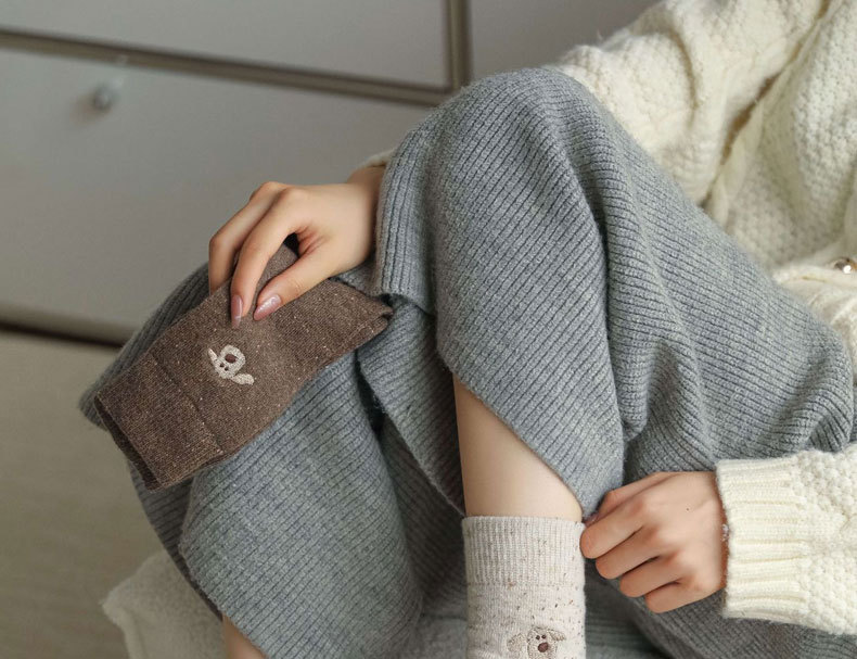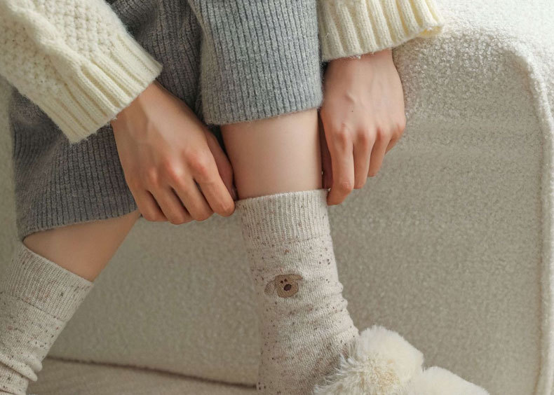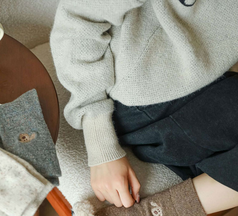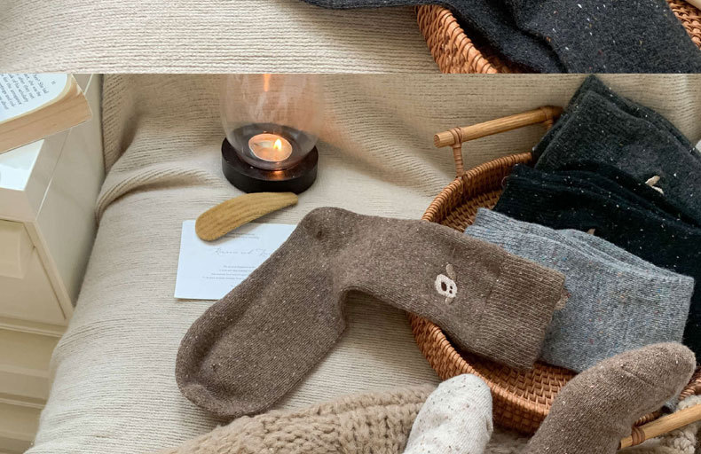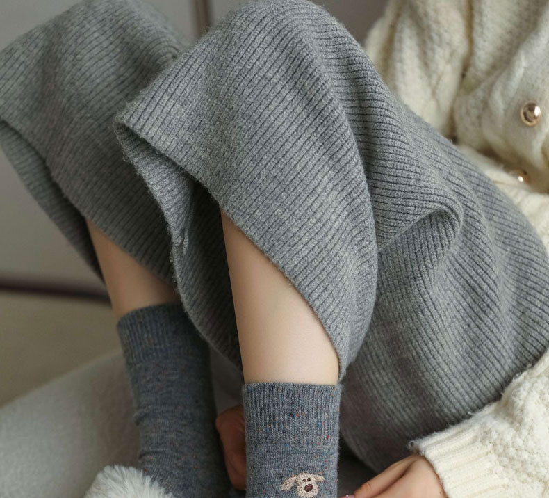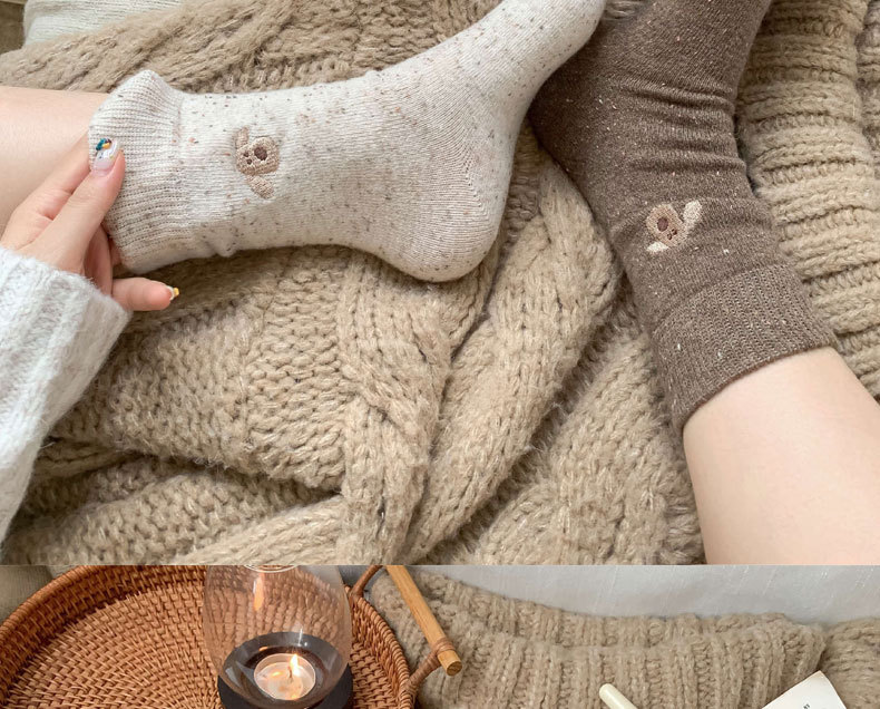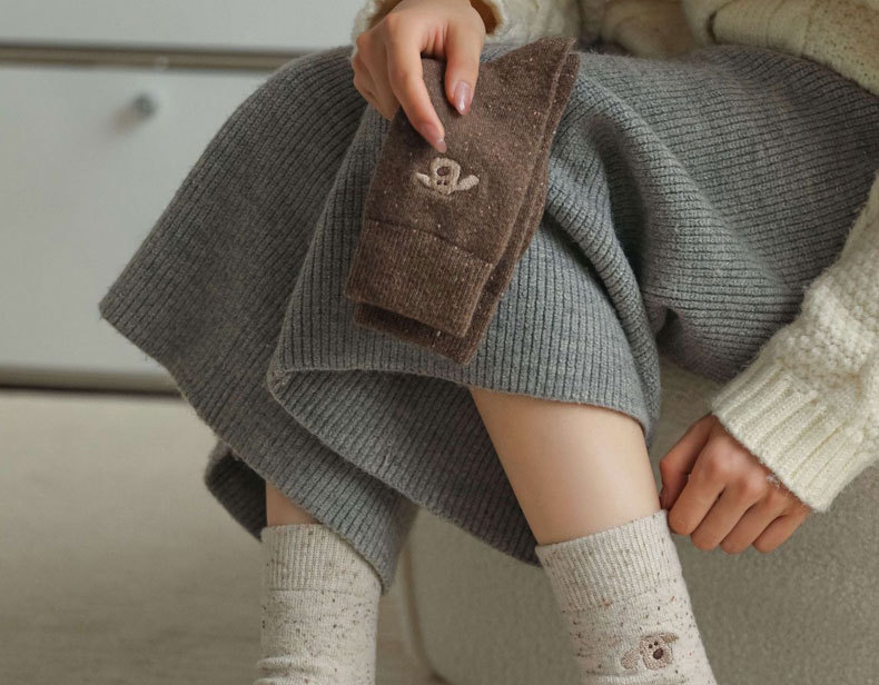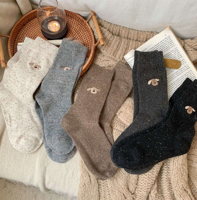 가을과 겨울 다크 브라운 스타일 포인트 원사 양모 양말 여성의 겨울 두꺼운 따뜻한 한국 스타일 귀여운 강아지 자수 중간 길이 양말스토어 가기