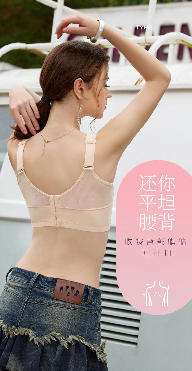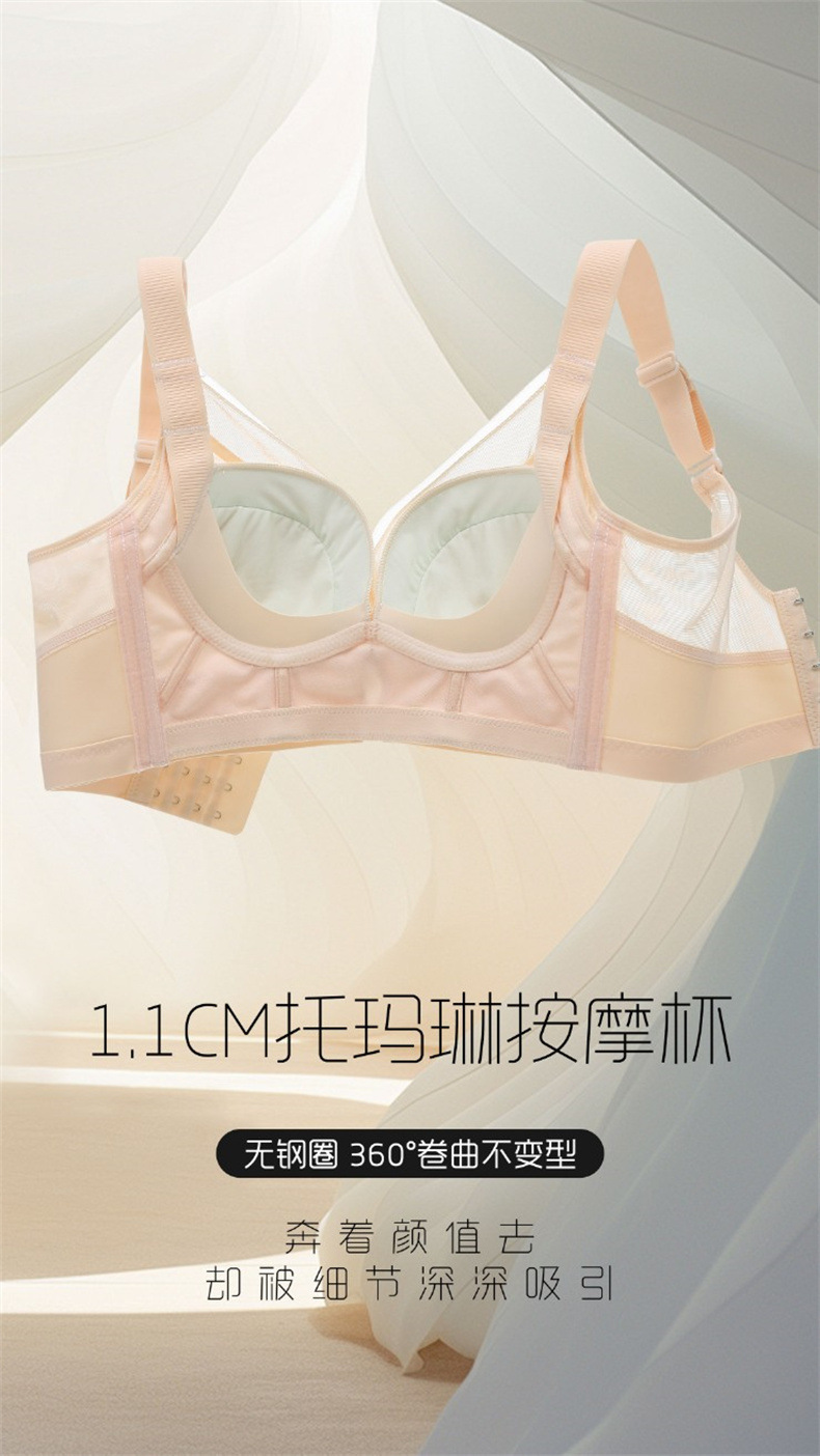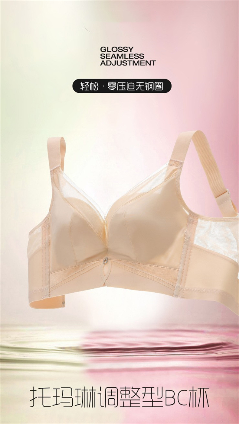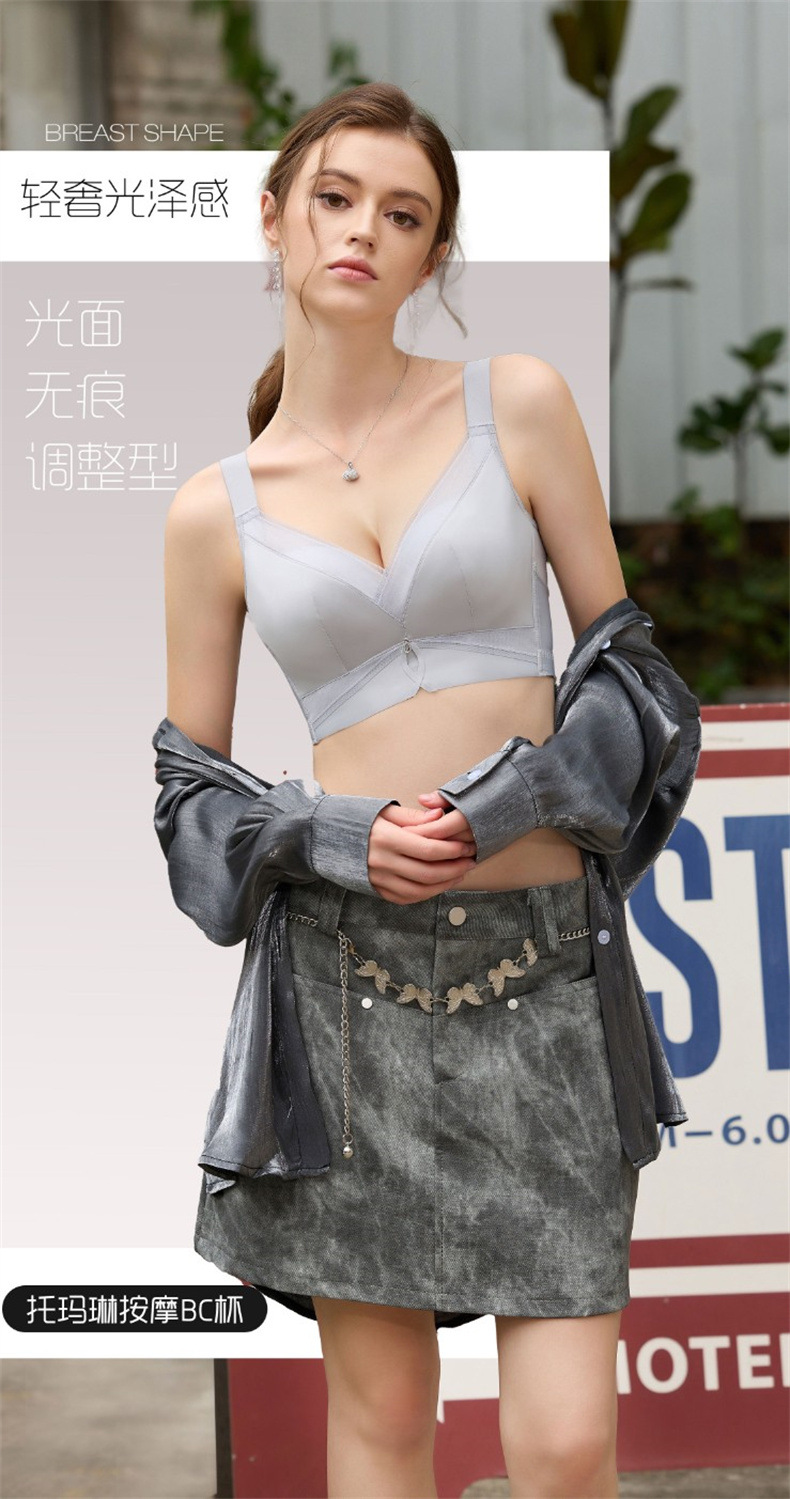 3399 Light Luxury Non-rimless Bra Push-up 마사지 컵 Non-marking Bra 사이드 클로징 Paramilis Full-wrap 조정 가능한 속옷