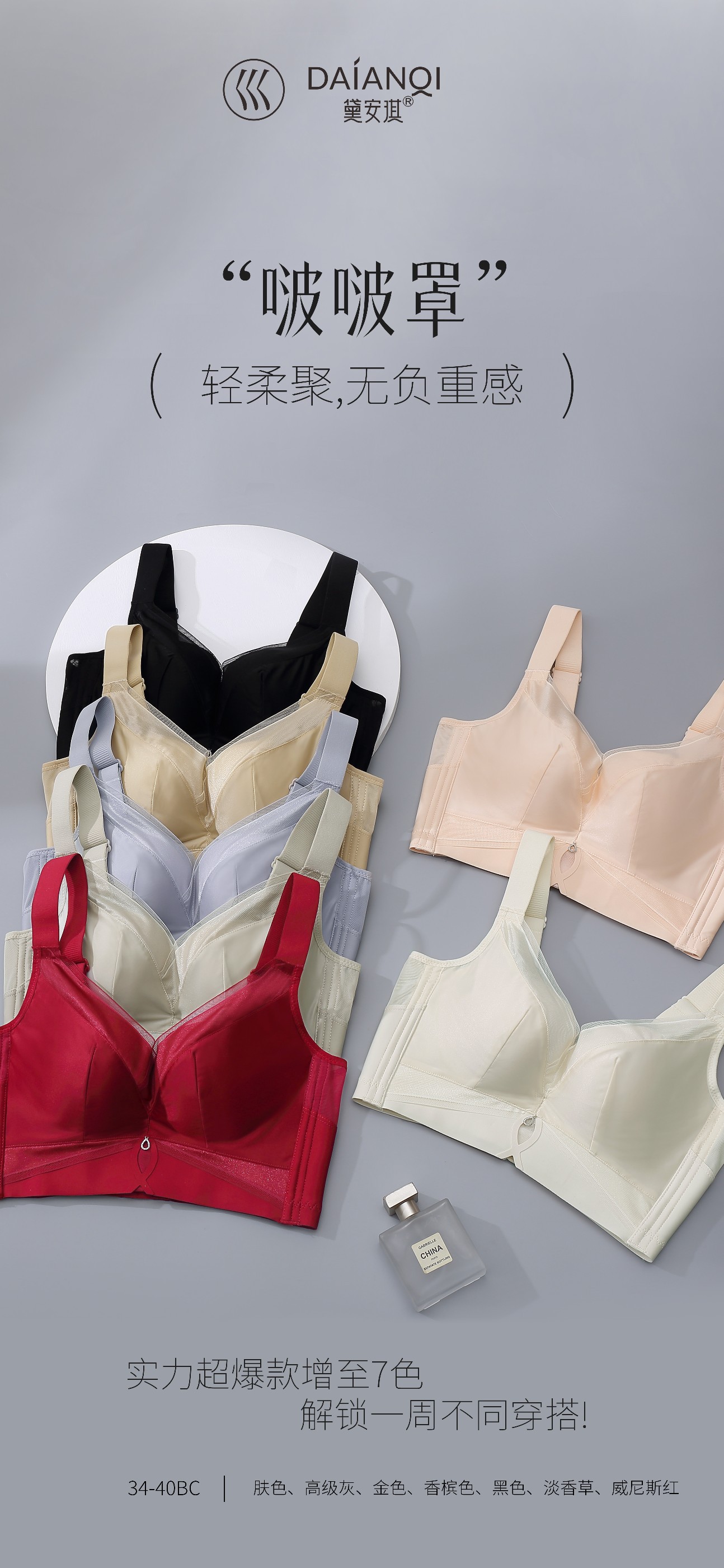 3399 Light Luxury Non-rimless Bra Push-up 마사지 컵 Non-marking Bra 사이드 클로징 Paramilis Full-wrap 조정 가능한 속옷스토어 가기