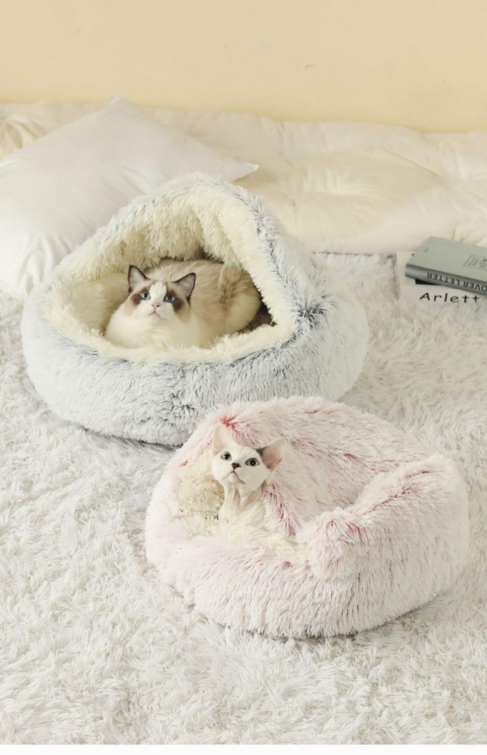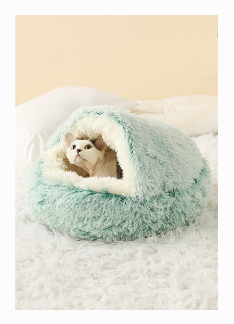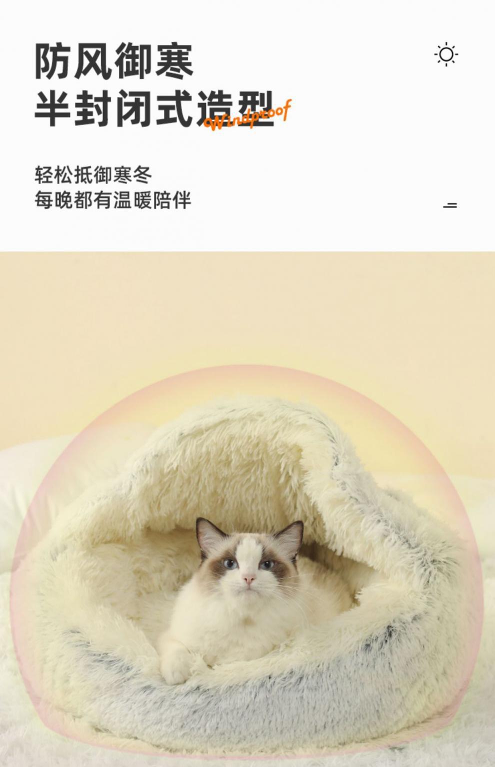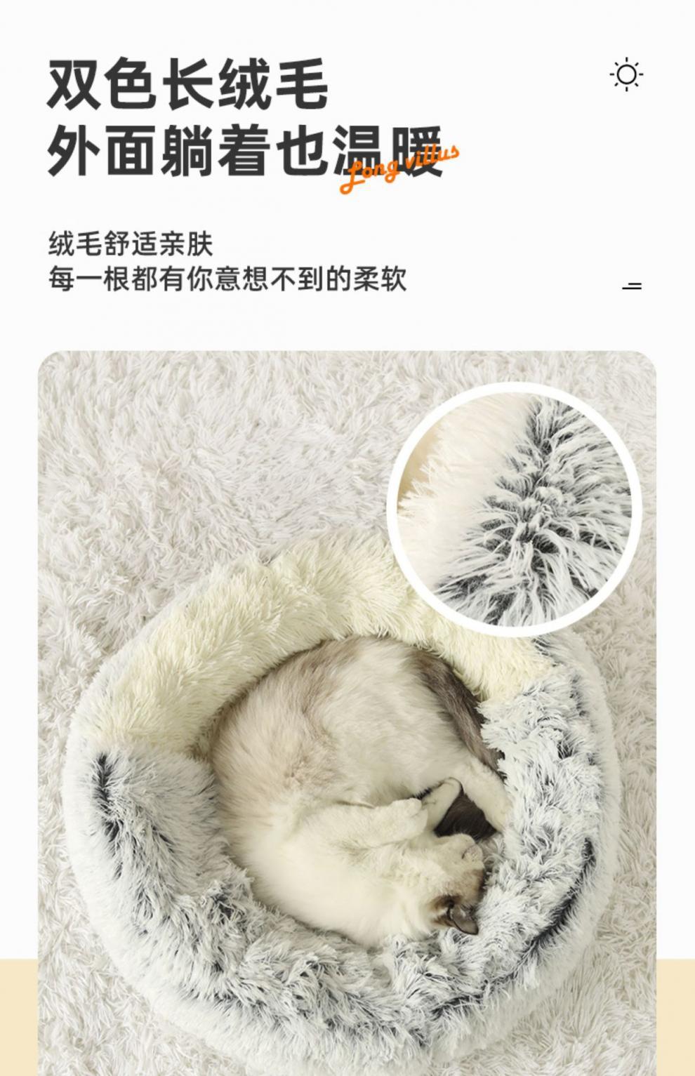 반 밀폐 된 따뜻한 긴 벨벳 겨울 반 밀폐 된 개집 고양이 쓰레기 매트 이동식 빨 수있는 둥근 둥지 애완 동물 쓰레기. 동물의 둥지.스토어 가기