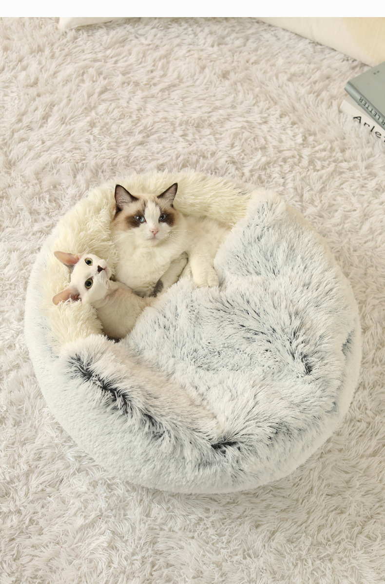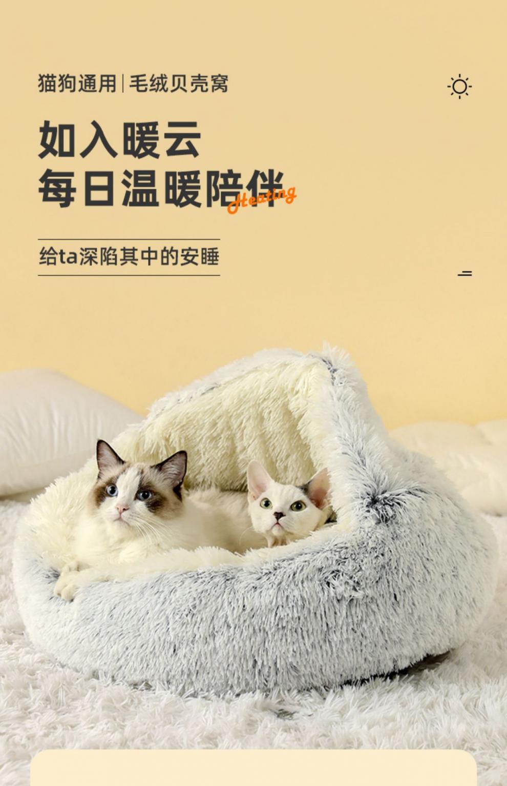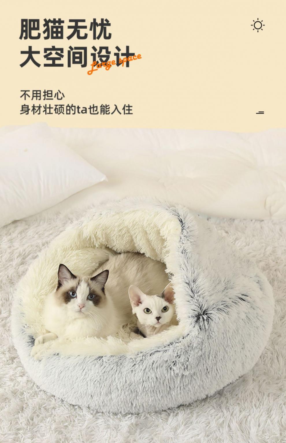 반 밀폐 된 따뜻한 긴 벨벳 겨울 반 밀폐 된 개집 고양이 쓰레기 매트 이동식 빨 수있는 둥근 둥지 애완 동물 쓰레기. 동물의 둥지.스토어 가기