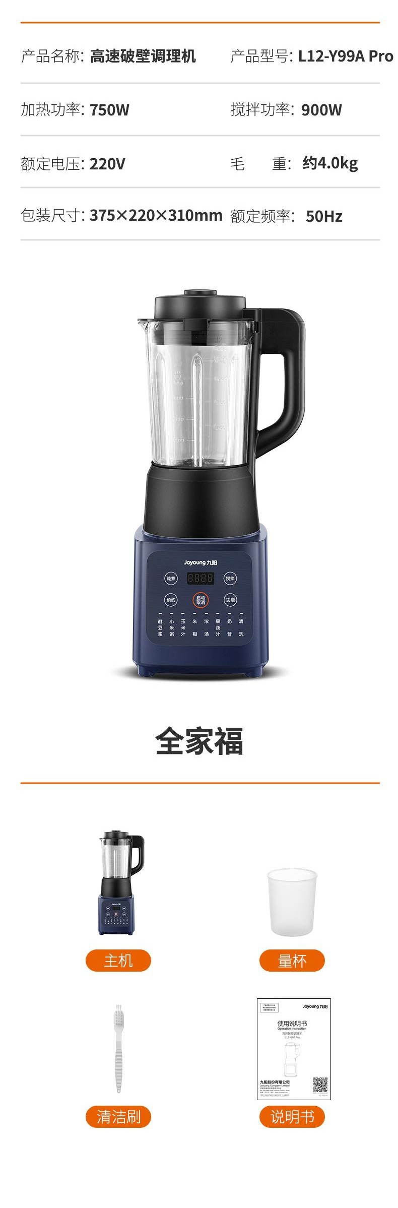 Jiuyang 벽 속보 기계 가정용 다기능 콩 우유 쌀 붙여 넣기 요리 기계 지능형 예약 유아식 보충 Y99Apro스토어 가기