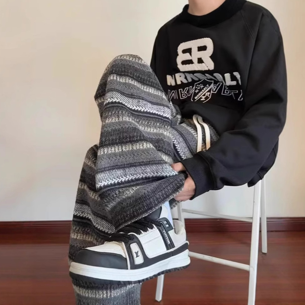 봄 남자의 느슨한 스트레이트 플러스 사이즈 레트로 유행 캐주얼 바지 청소년 봄과 가을 청소년 인기 바지 느슨한스토어 가기