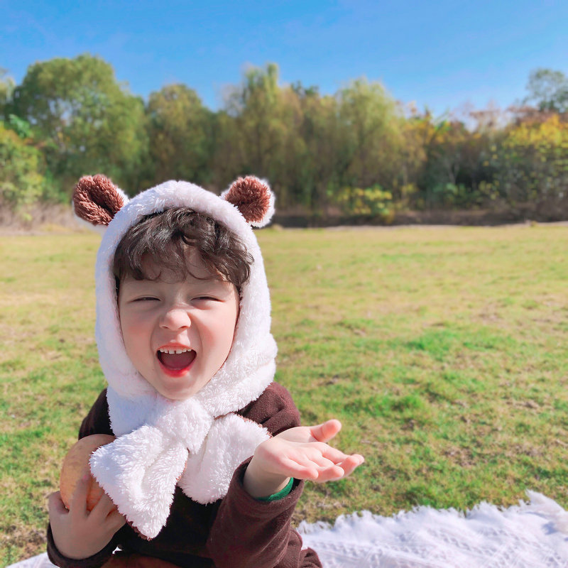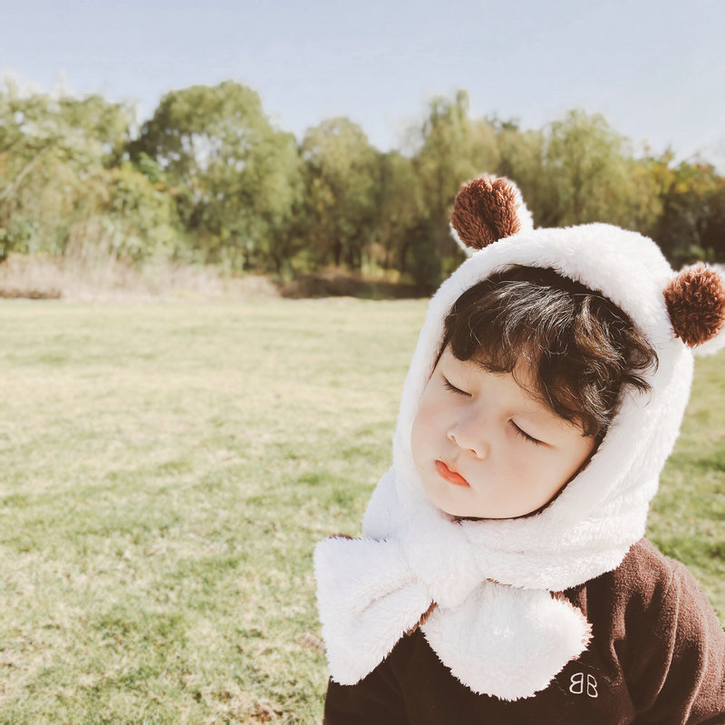 어린이 모자 겨울 아기 모자 스카프 올인원 세트 후드 스카프 귀마개 기모 소스 공장스토어 가기
