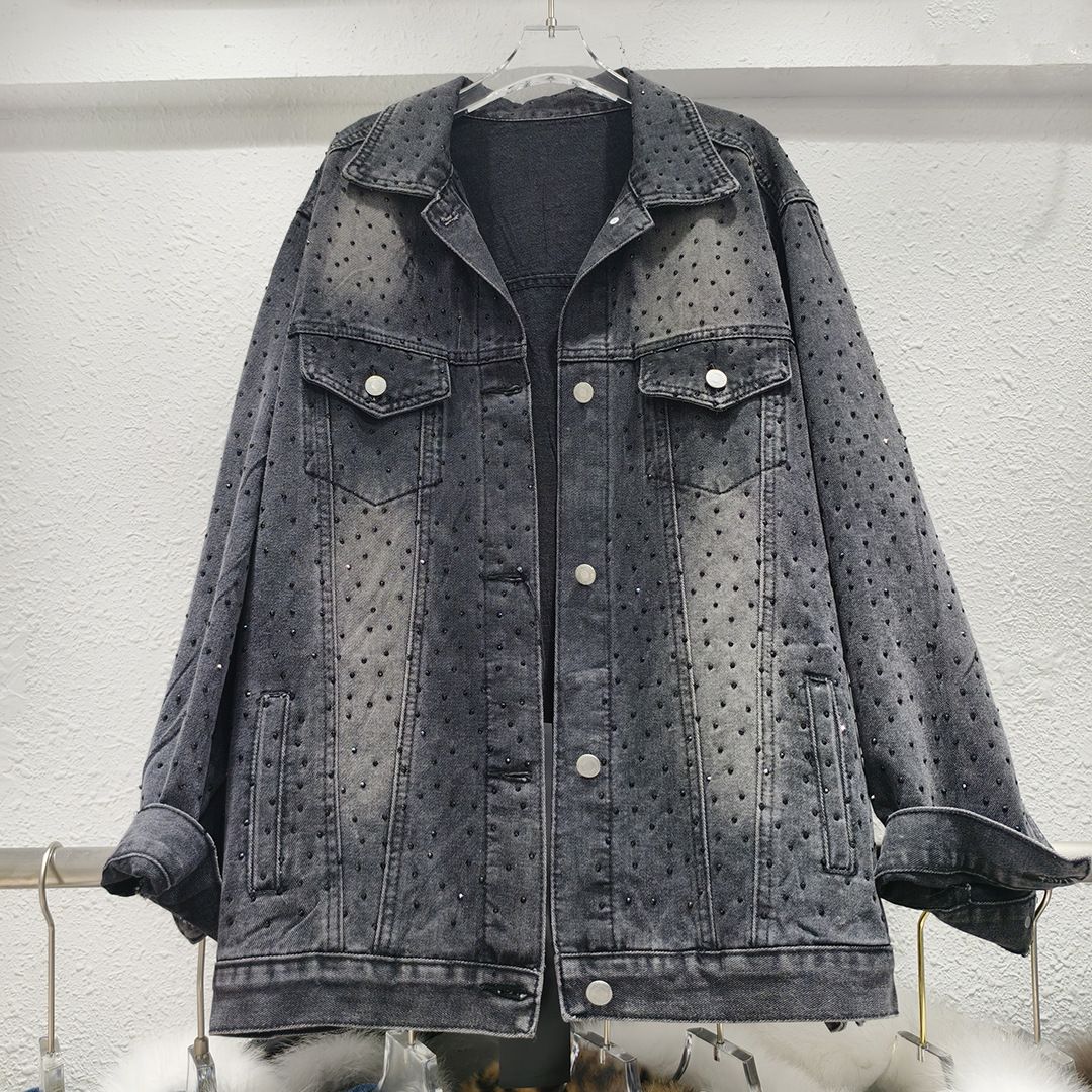 중공업 플래시 다이아몬드 데님 코트 여성의 2025 년 봄과 가을 미국 조수 브랜드 통통한 잘 생긴 탑 디자인 느슨한 커플 재킷