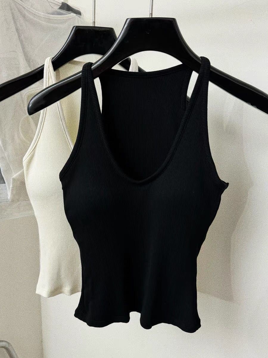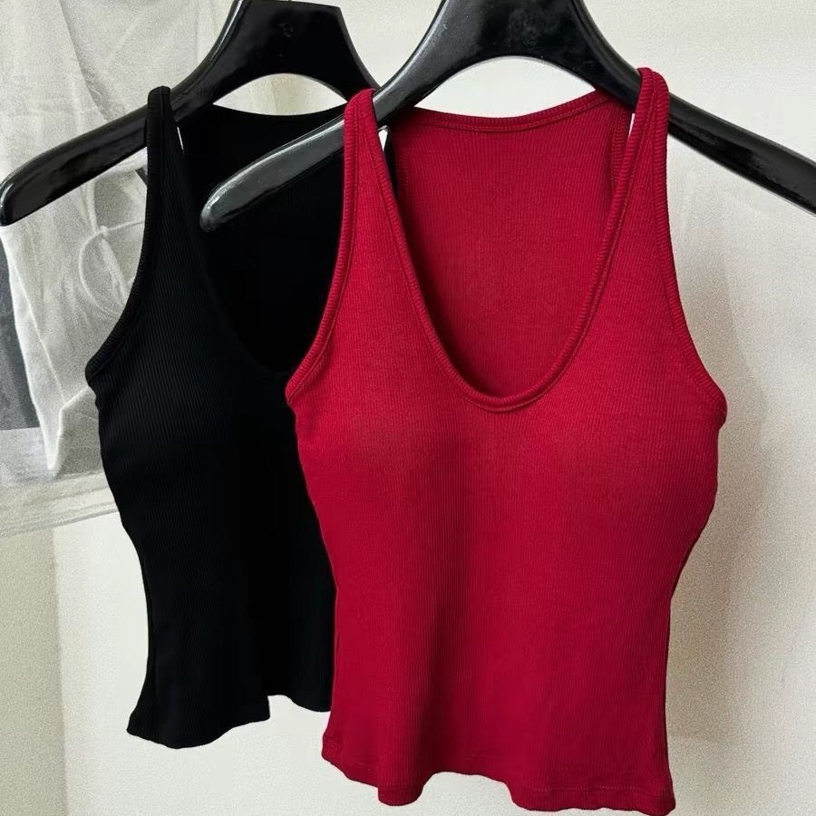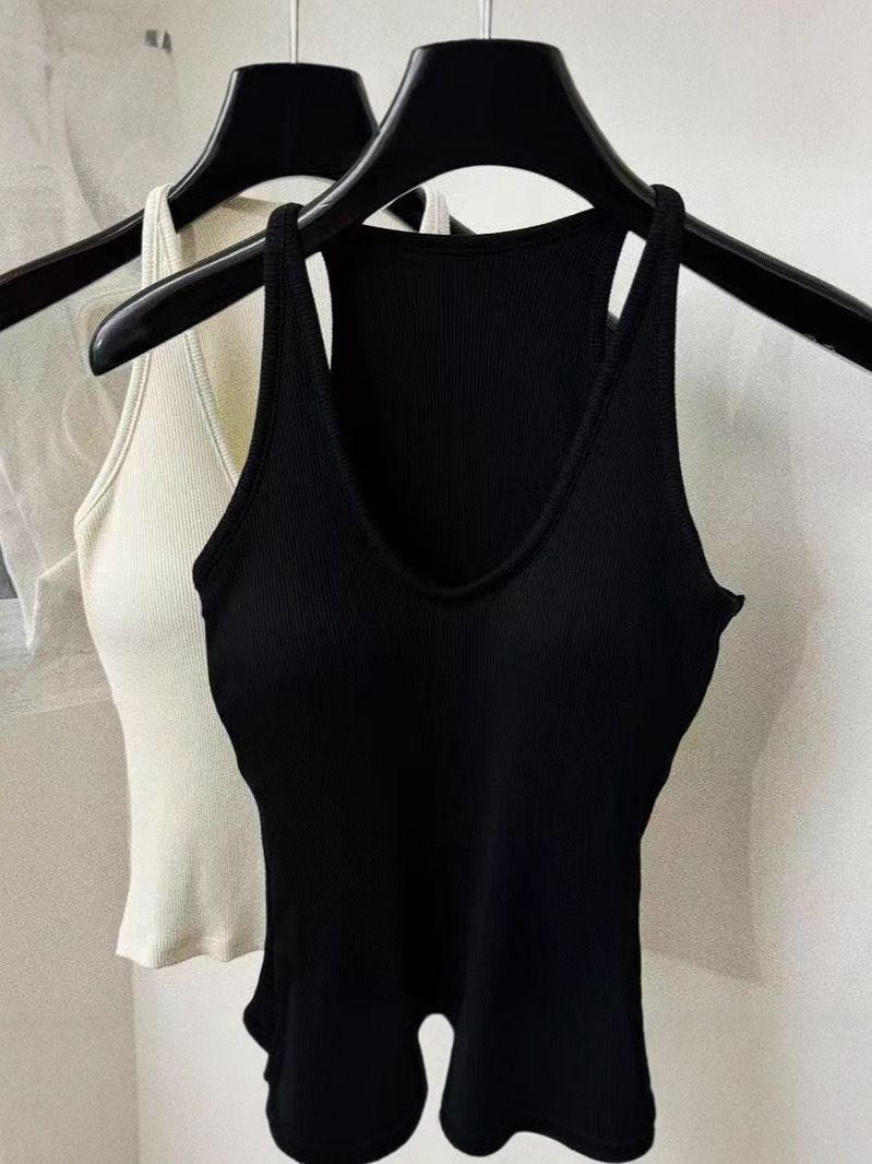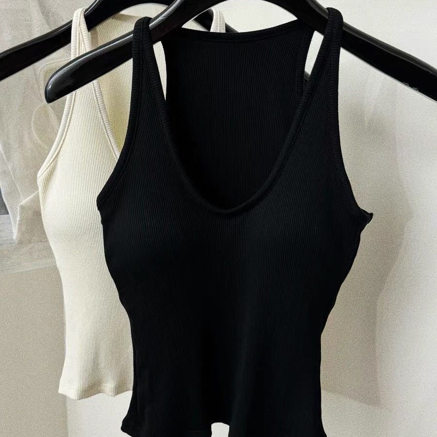 가슴 패드 카미 솔 여성의 2024 새로운 스타일 내부와 아름다운 유방 커버 아름다운 등 슬림 핏 슬림 핏 넥 탑