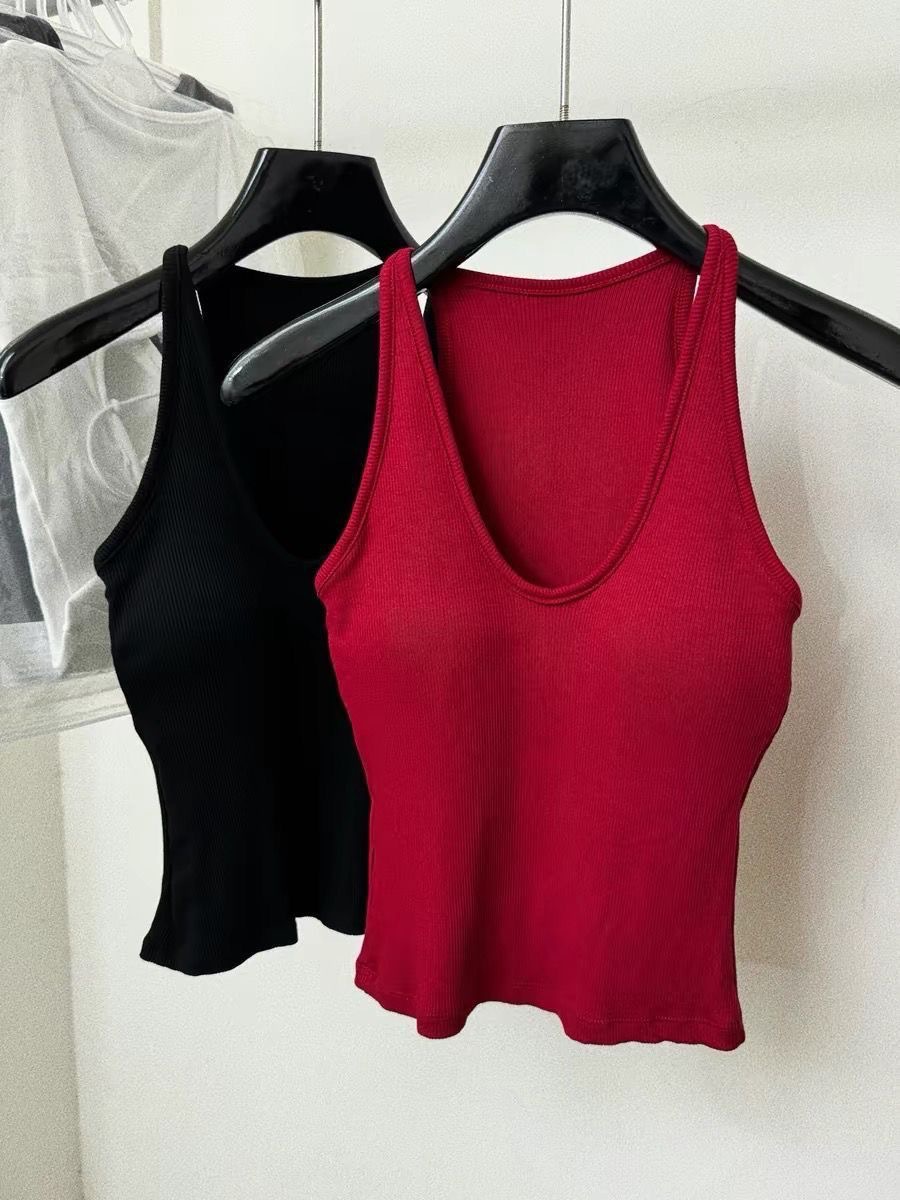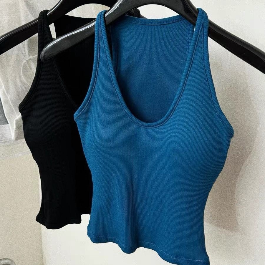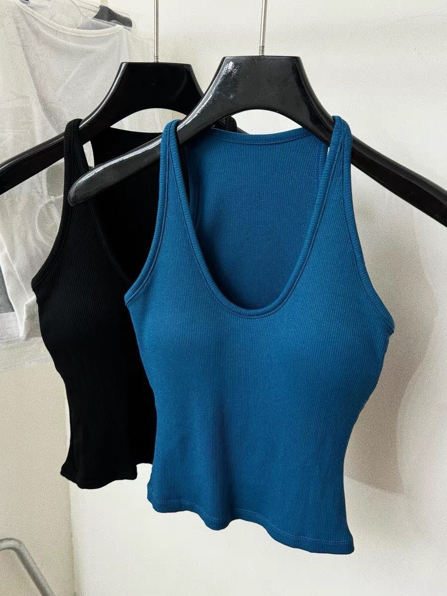 가슴 패드 카미 솔 여성의 2024 새로운 스타일 내부와 아름다운 유방 커버 아름다운 등 슬림 핏 슬림 핏 넥 탑