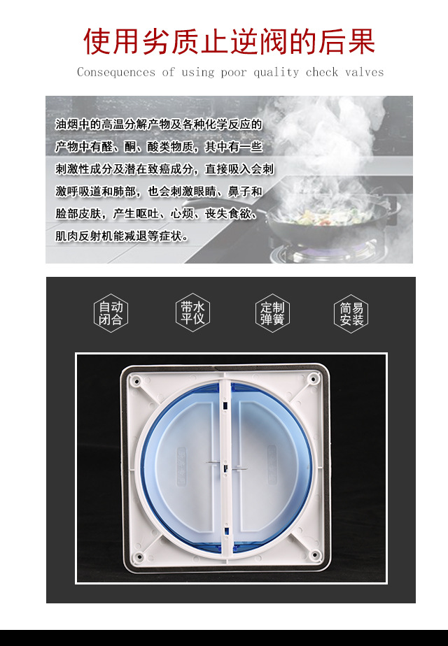 주방 연도 체크 밸브 범위 후드 배기 파이프 유니버설 체크 밸브 화장실 연기 방지 보물 단방향 연기 정지 밸브