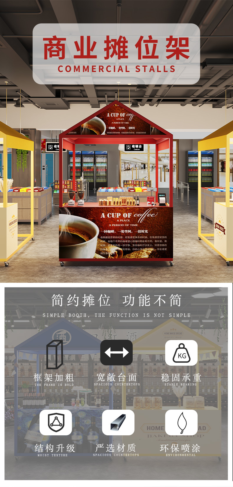 철 이동식 스택 슈퍼마켓 프로모션 디스플레이 랙 야시장 간식 음식 축제 전시회 간단한 스택 랙