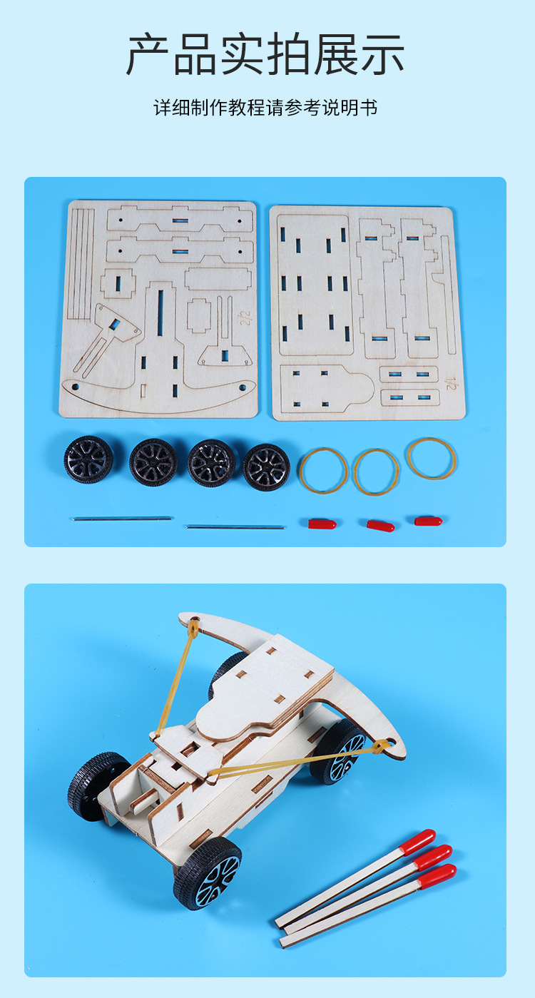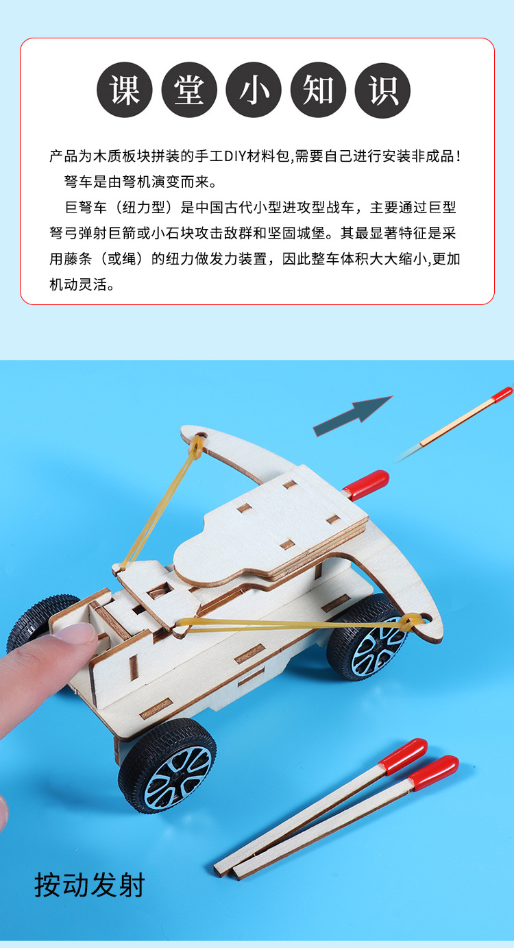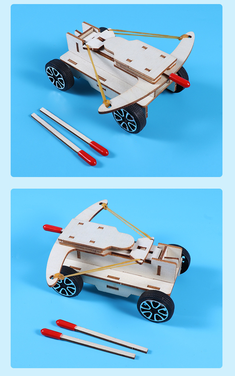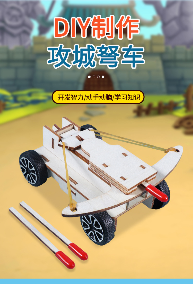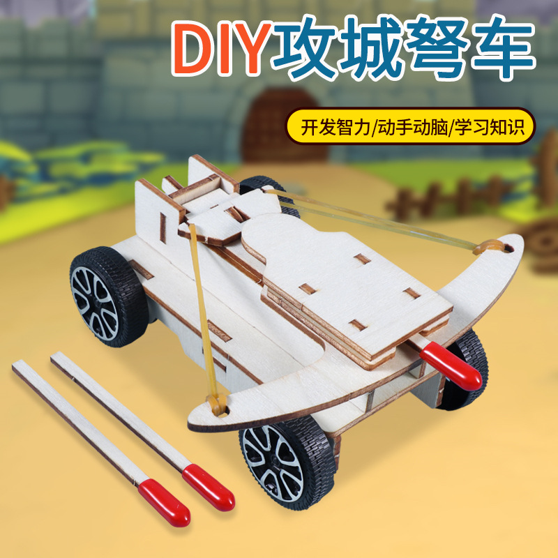 석궁 자동차 어린이 학생들은 손으로 조립 된 나무 기술을 발명했습니다 작은 공성 세트 재료 패키지 과학적 실험