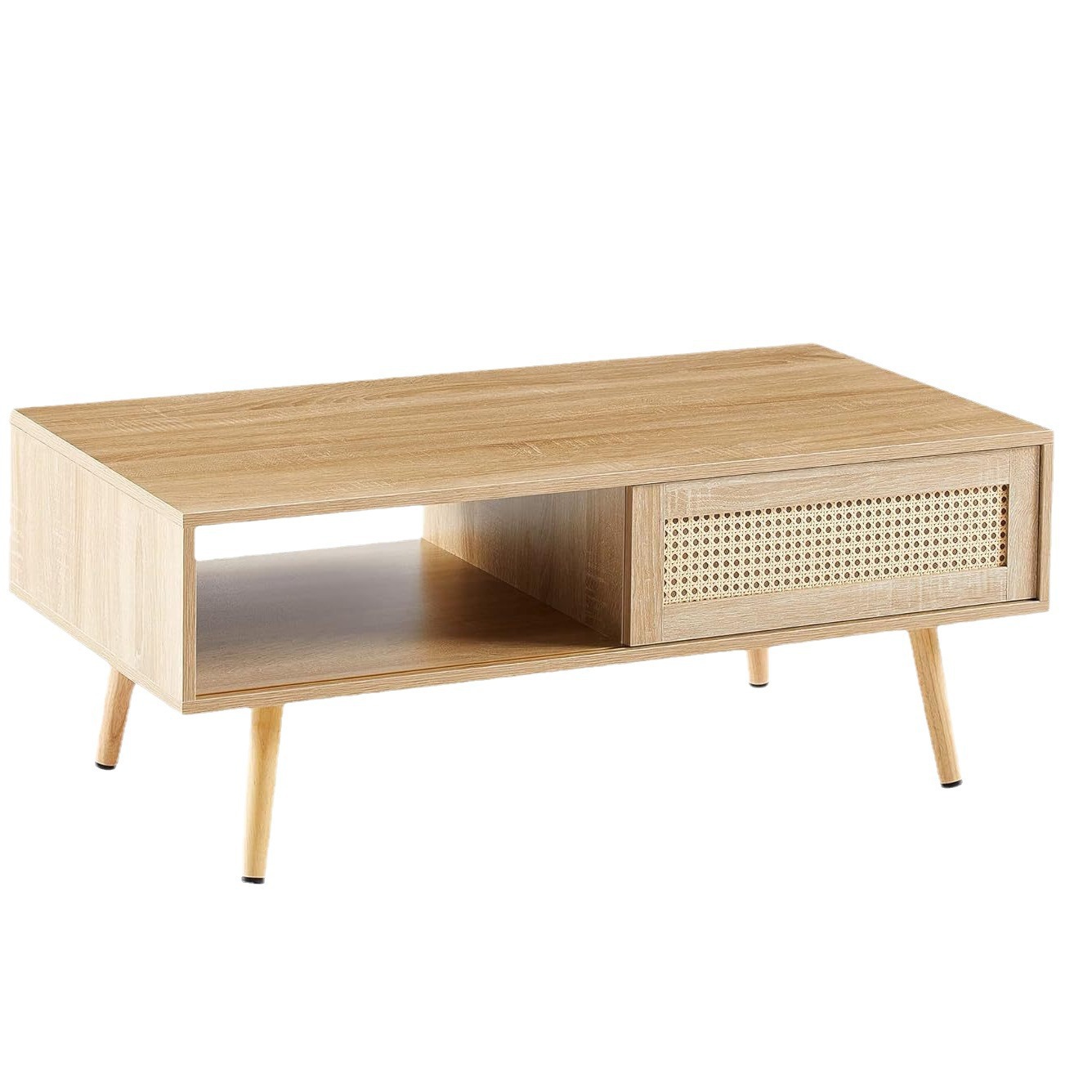 저장 공간이있는 현대 간단한 커피 테이블 직사각형 나무 커피 테이블 등나무 아마존 국경 대외 무역 핫 세일스토어 가기