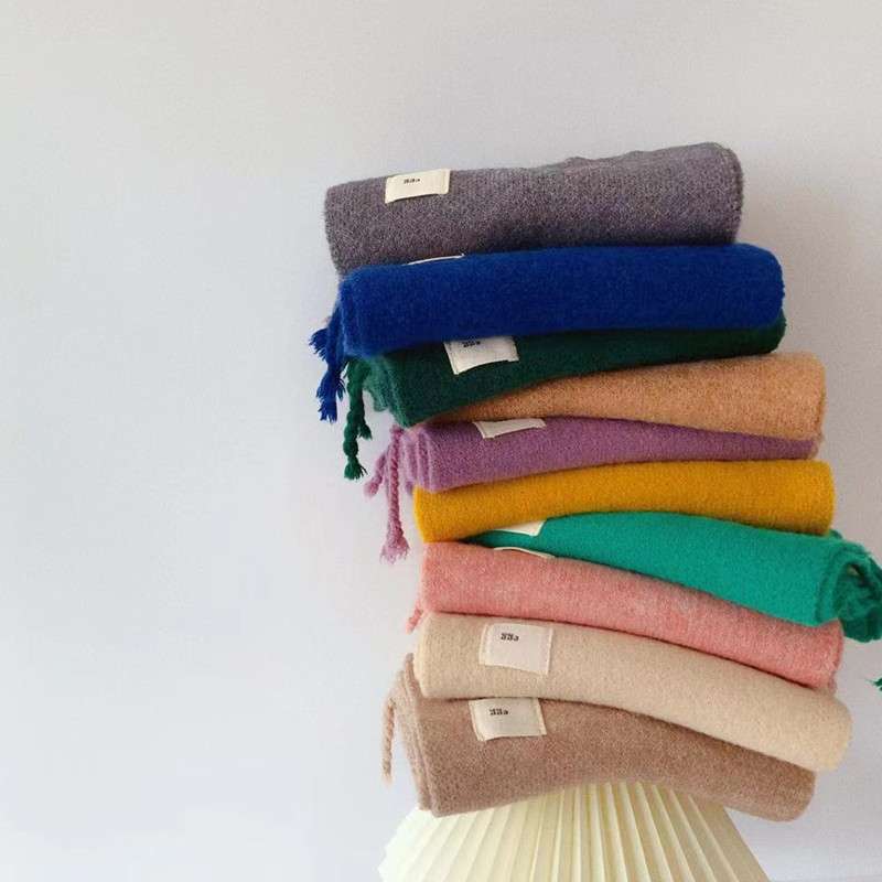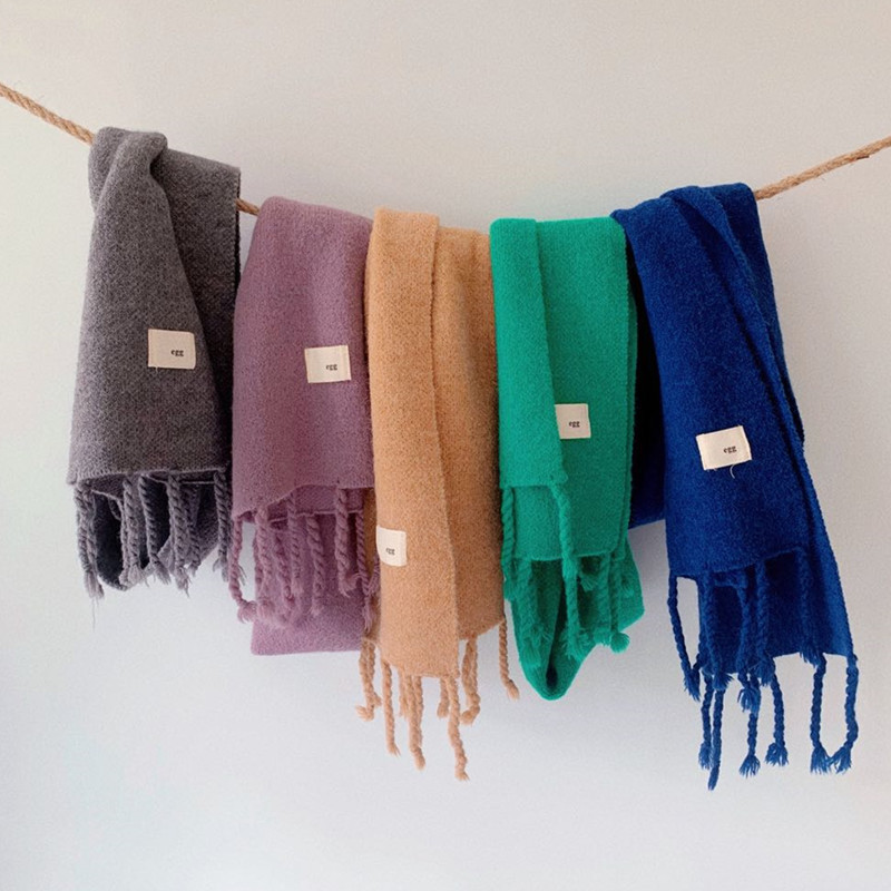 가을 남 어린이 스카프 가을과 겨울 한국 새 술 작은 천 라벨 소년과 소녀 솔리드 컬러 니트 아기의 스카프스토어 가기