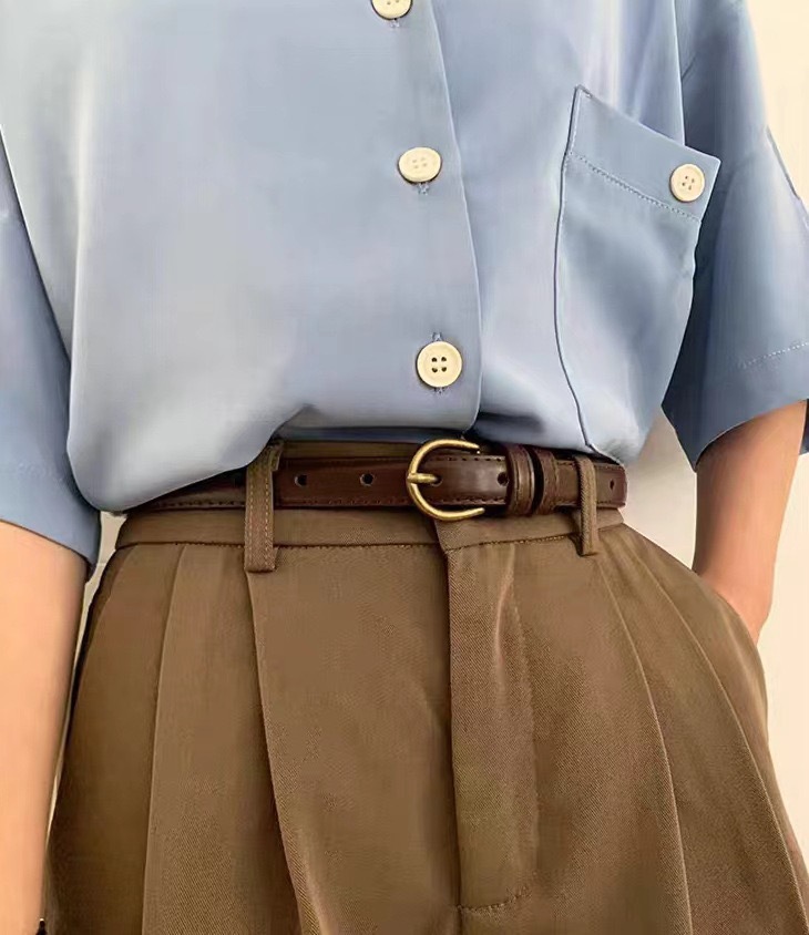 벨트 여성 패션 통근 조커 모방 가죽 PU 가죽 캐주얼 장식 레트로 구리 핀 버클 트렌디 한 여성 벨트 도매