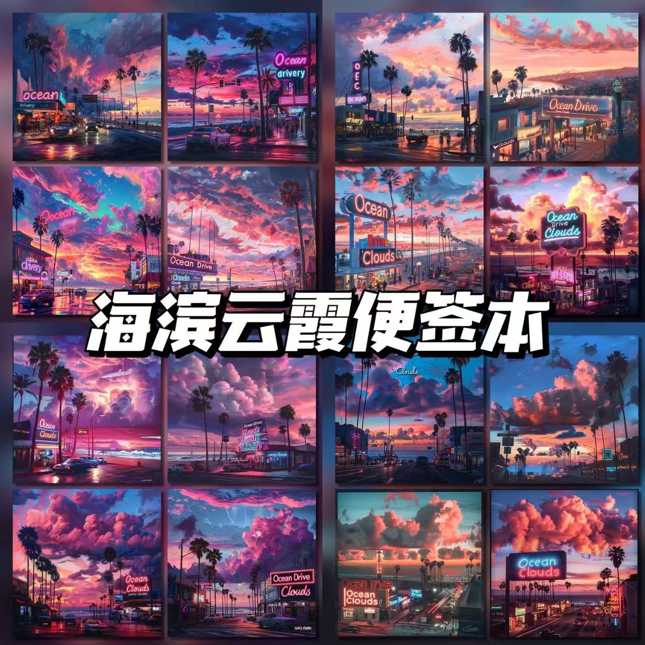 해변 Yunxia 시리즈 포스트잇 노트 꿈꾸는 미학적 인 스타일 스티커 창조적 인 학생 학습 각서 N 스티커스토어 가기