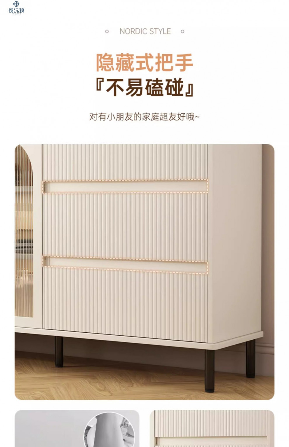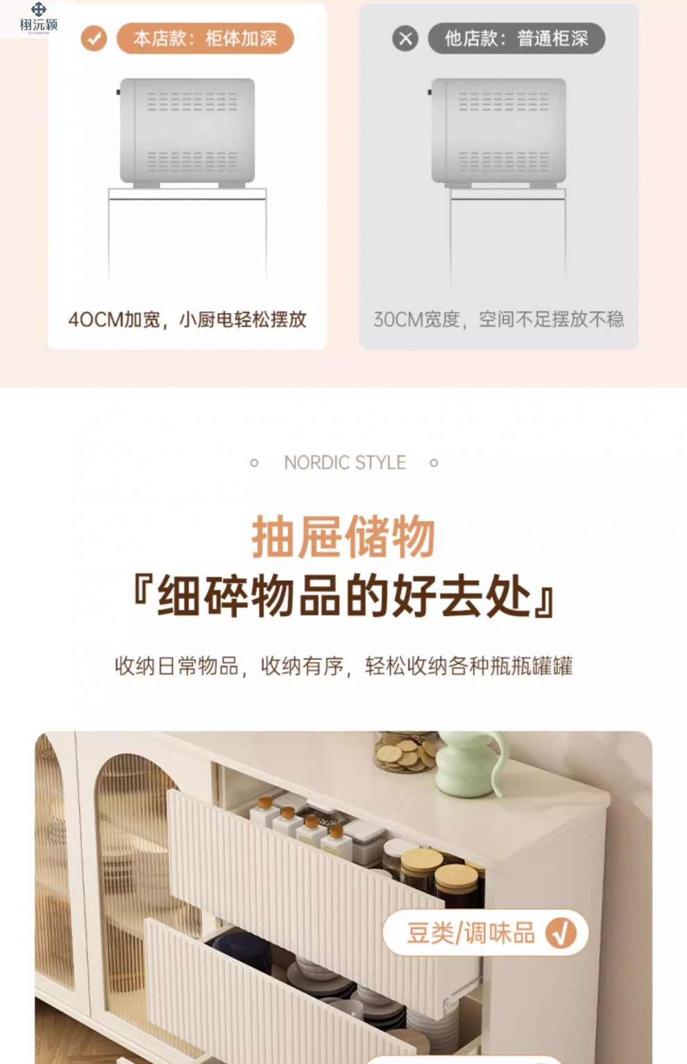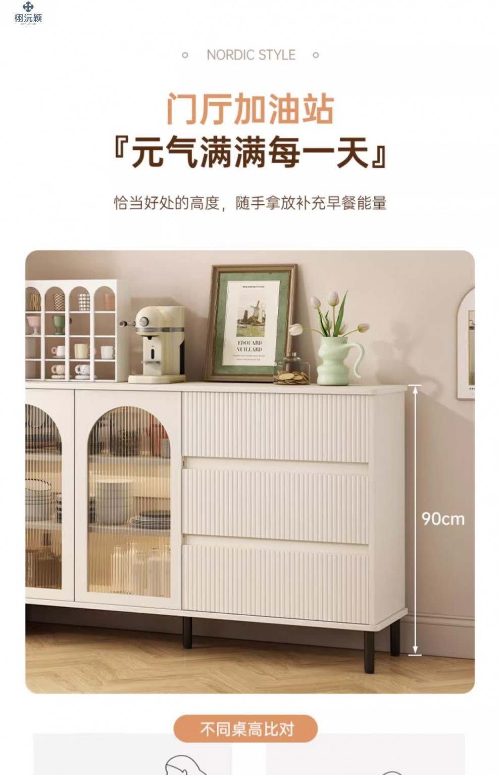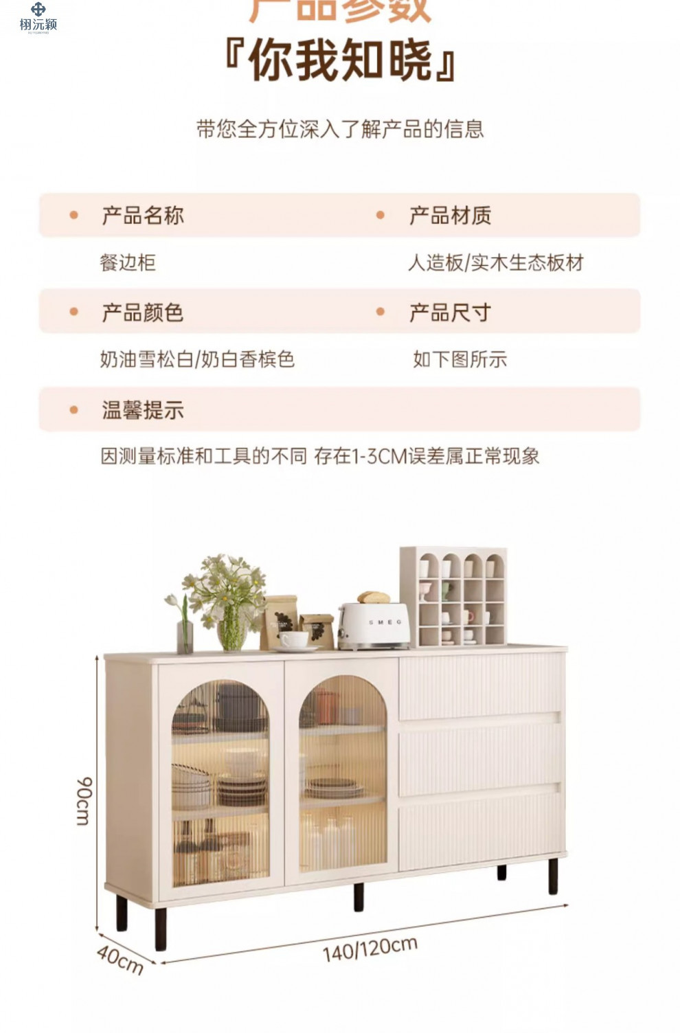 • 【확장 버전 ☆ 1도어 서랍 3개] 밀크화이트 샴페인 컬러 100*34*95cm ( ♥ 15mm 두께의 조리대)