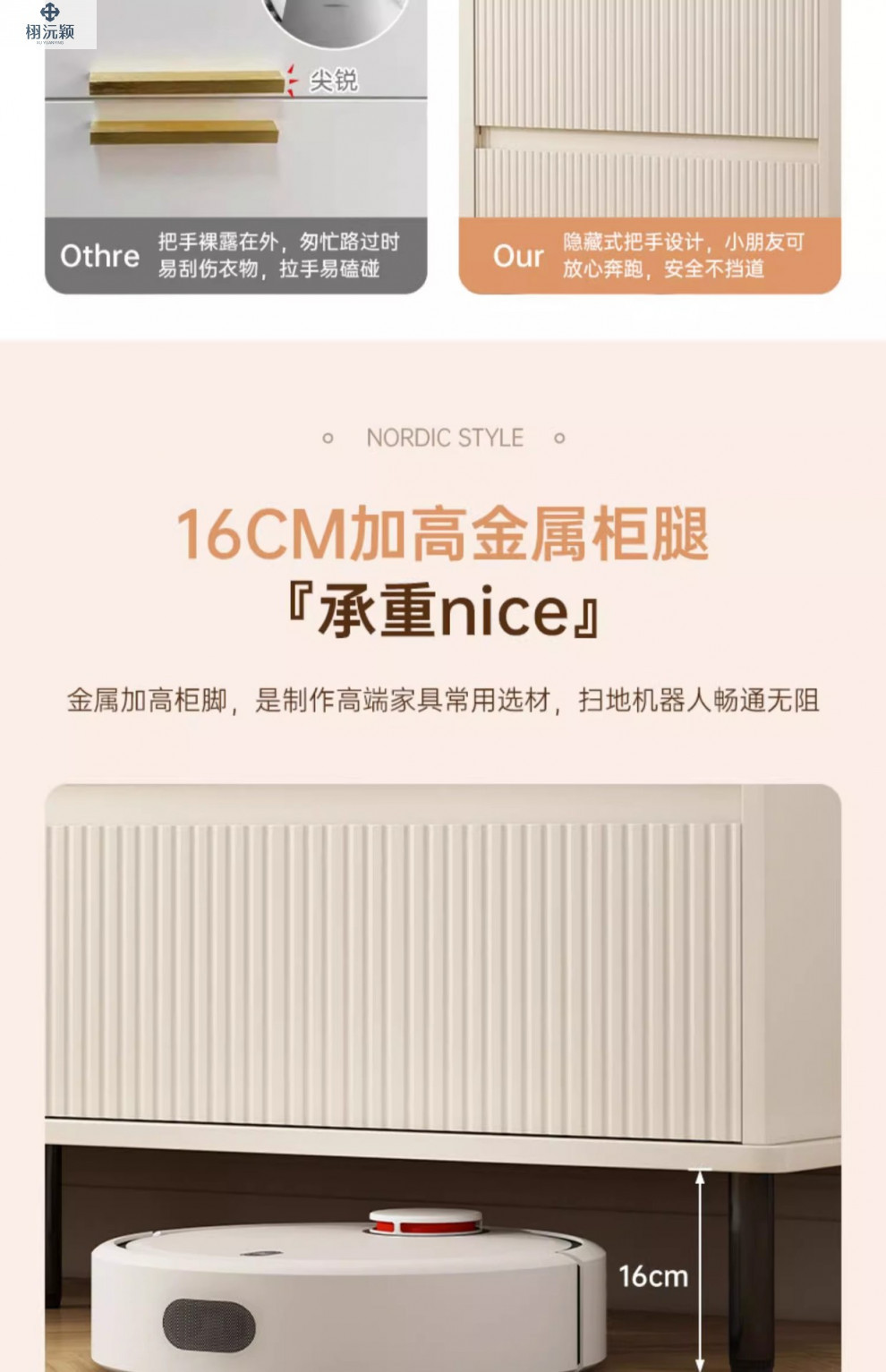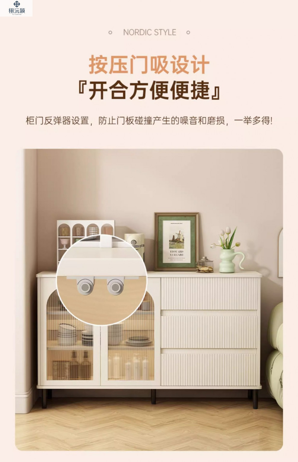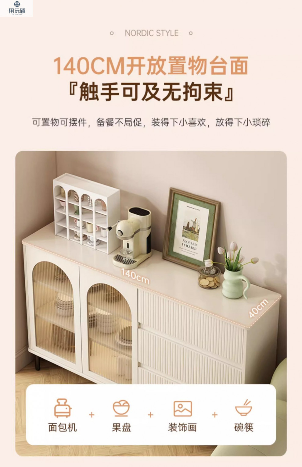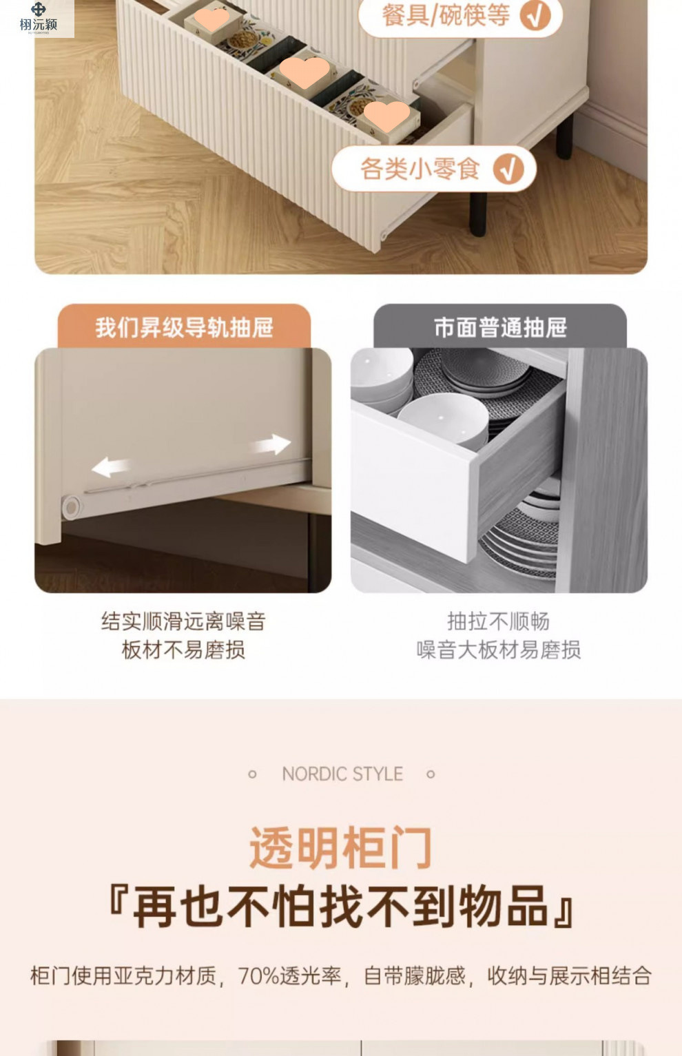 • 【확장 버전 ☆ 1도어 서랍 3개] 밀크화이트 샴페인 컬러 100*34*95cm ( ♥ 15mm 두께의 조리대)