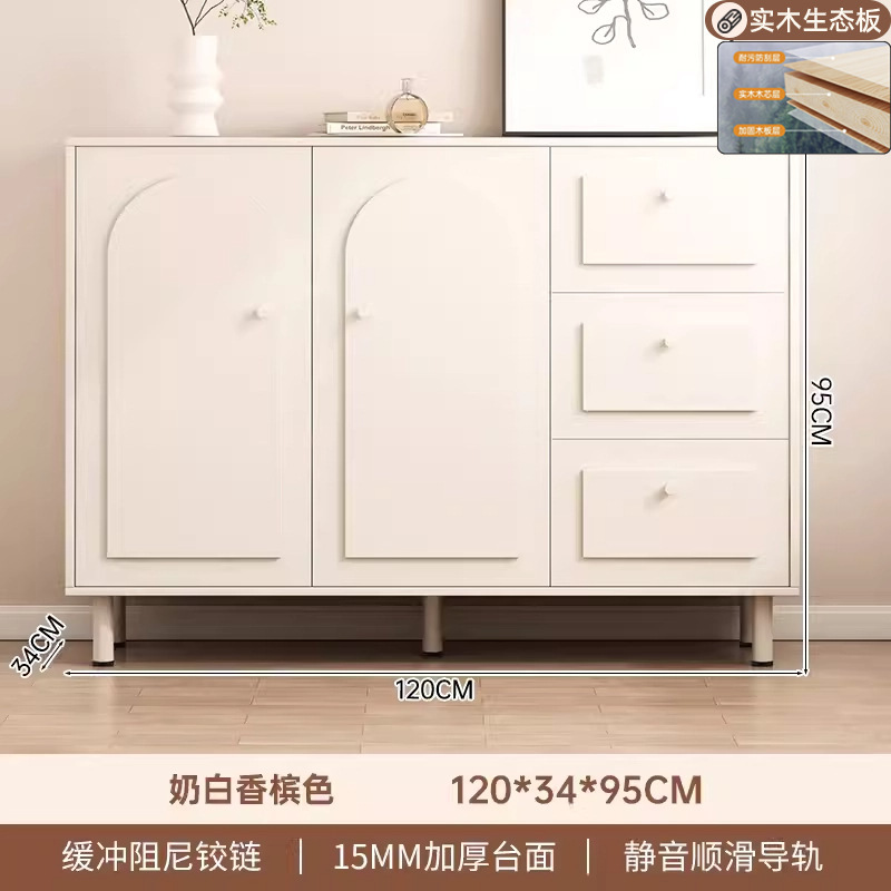 편리한 다층 차 캐비닛 크림 스타일 사이드 보드 벽 통합 간단한 저장 캐비닛 가정용 거실 캐비닛 주방