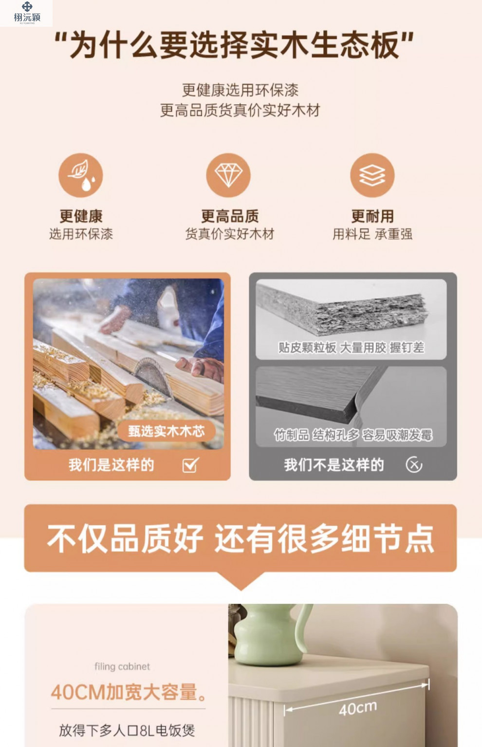• [업그레이드된 원목 생태보드] 밀크화이트 샴페인 컬러 80*34*95cm