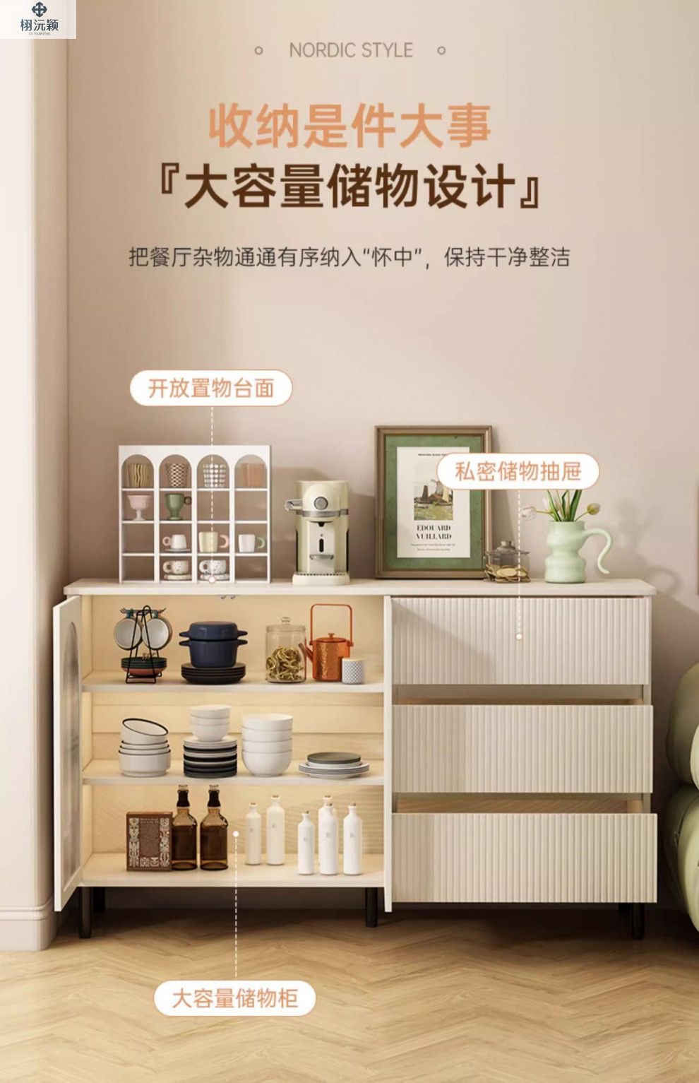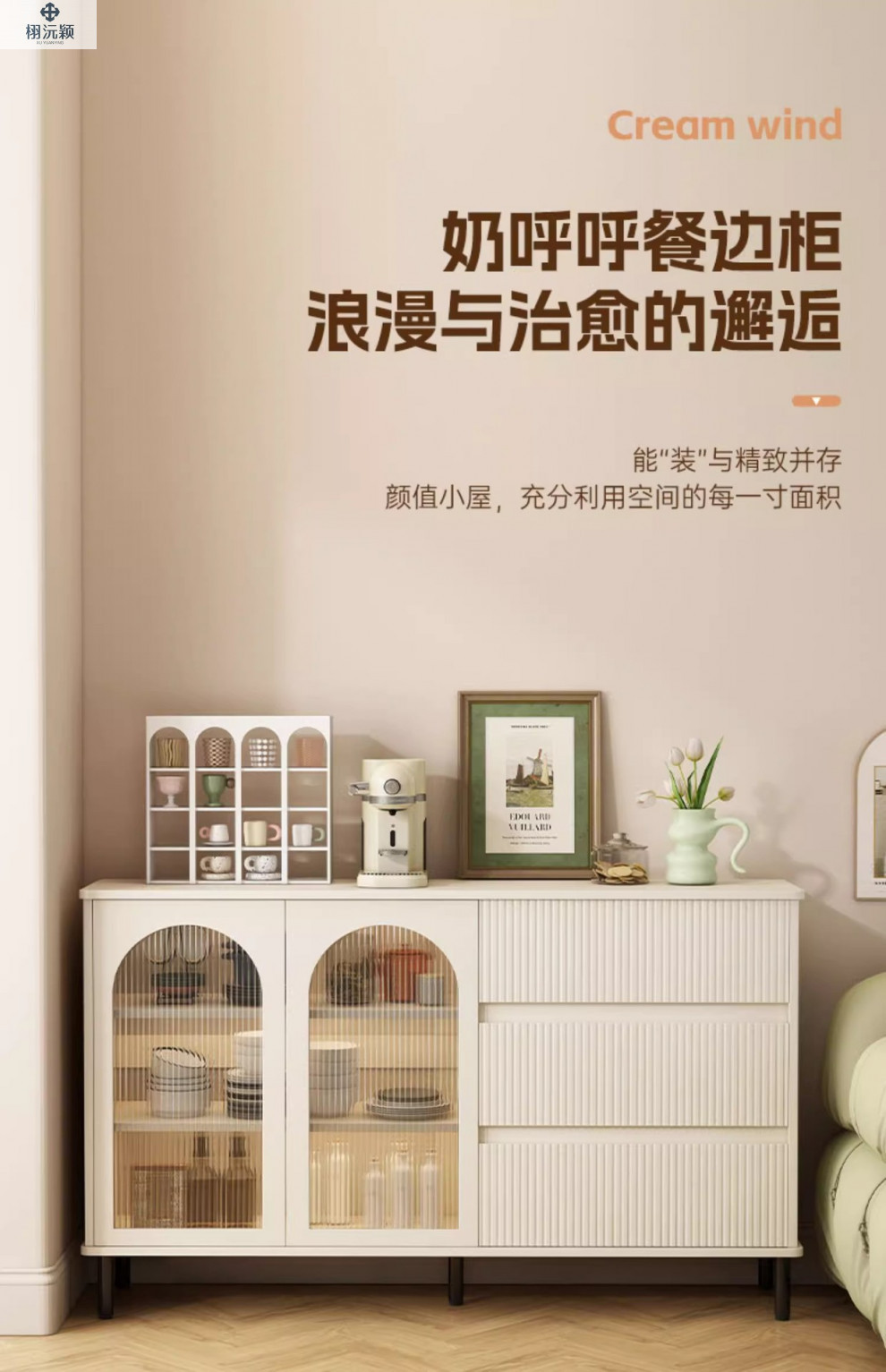 편리한 다층 차 캐비닛 크림 스타일 사이드 보드 벽 통합 간단한 저장 캐비닛 가정용 거실 캐비닛 주방스토어 가기