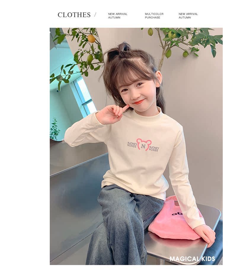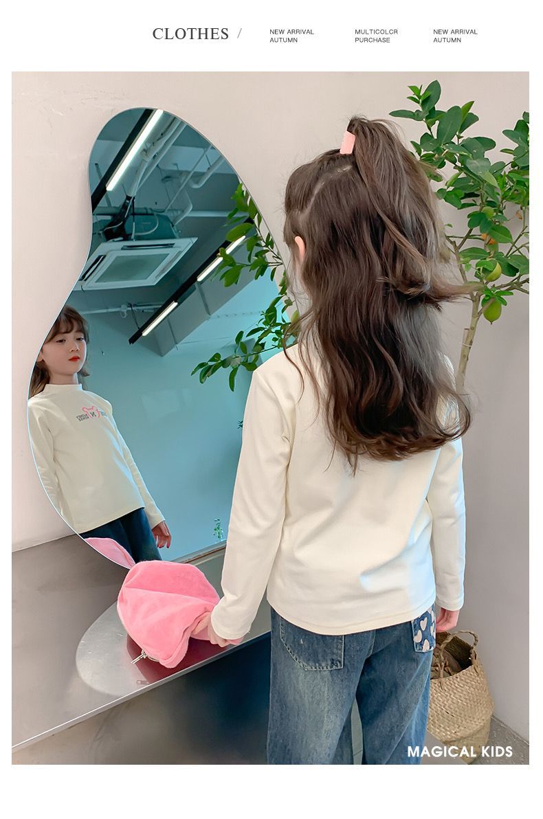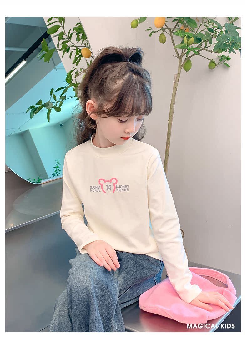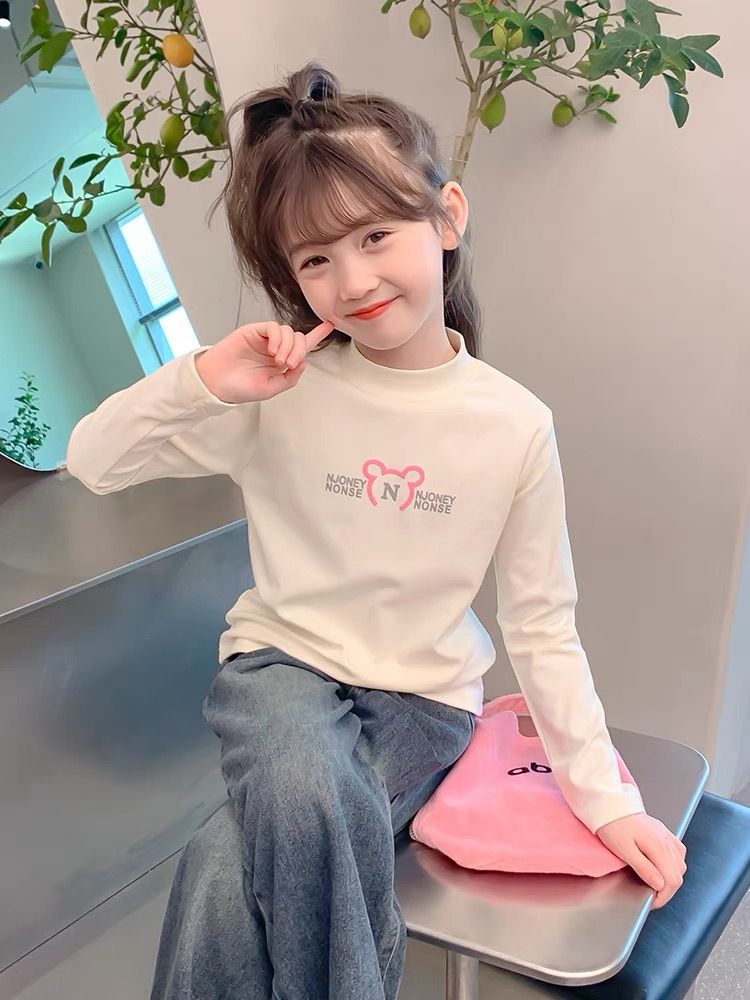 아동용 하의 셔츠 가을, 겨울 아동용 티셔츠 긴팔 소녀 벨벳 탑 베이비 이너웨어 2023 새로운 하프 터틀넥스토어 가기