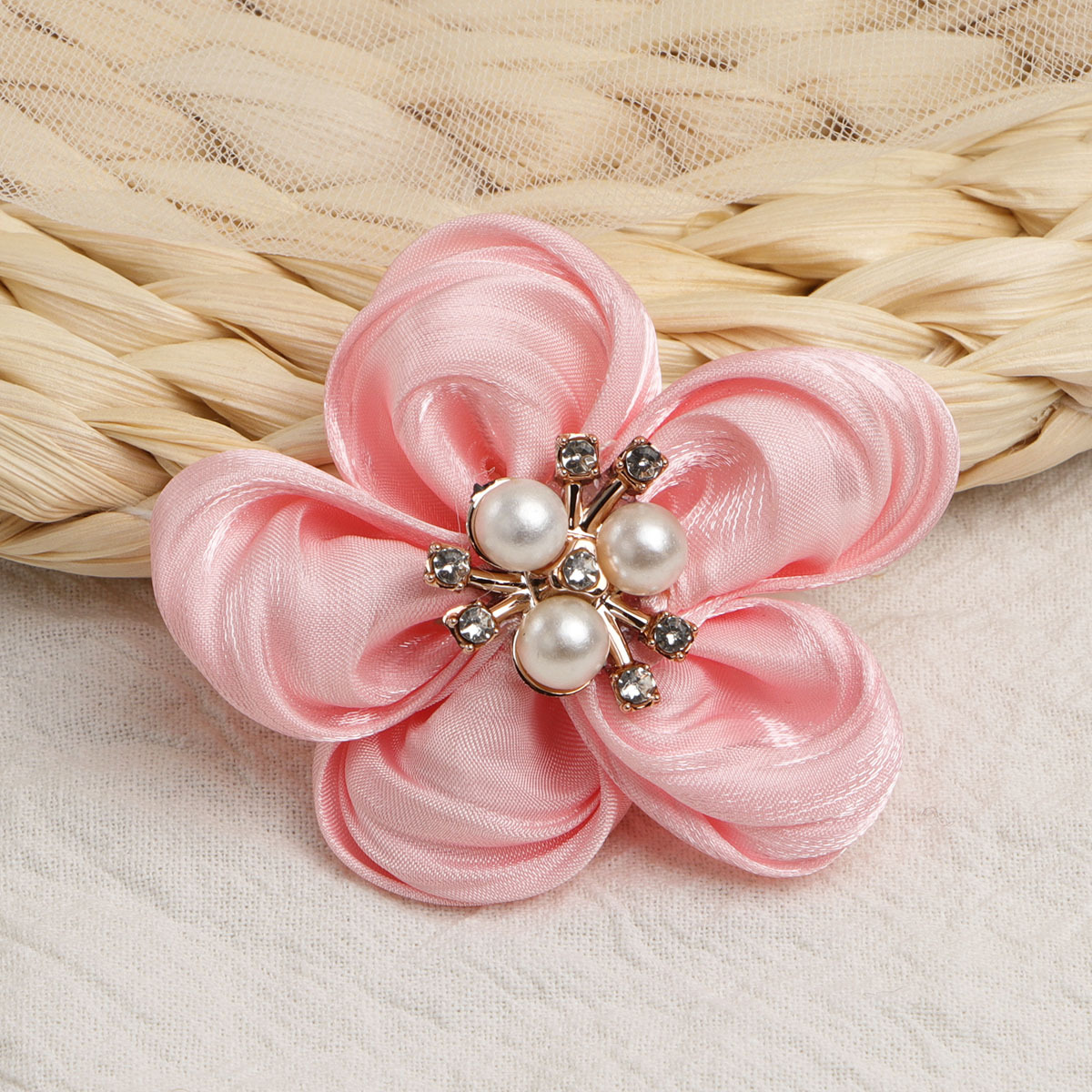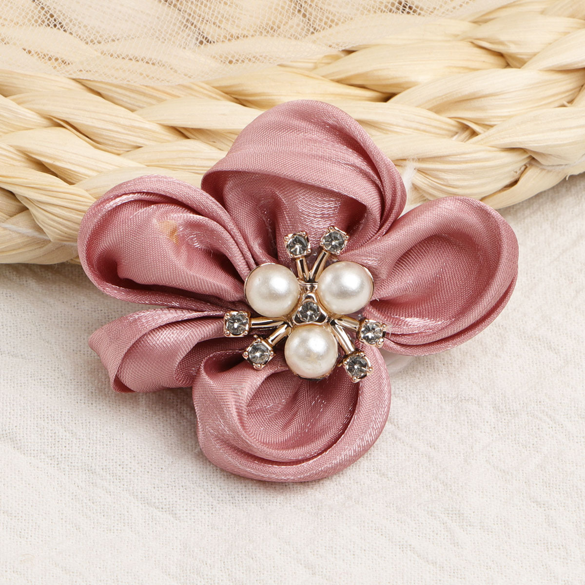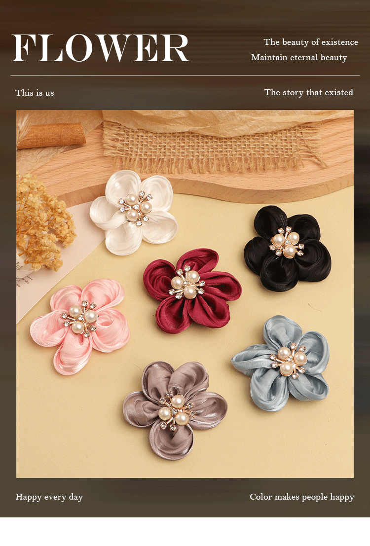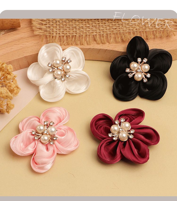한국의 새로운 5 꽃잎 진주 직물 꽃 수제 DIY 헤어 액세서리 어린이 의류 신발 꽃 반제품 액세서리스토어 가기