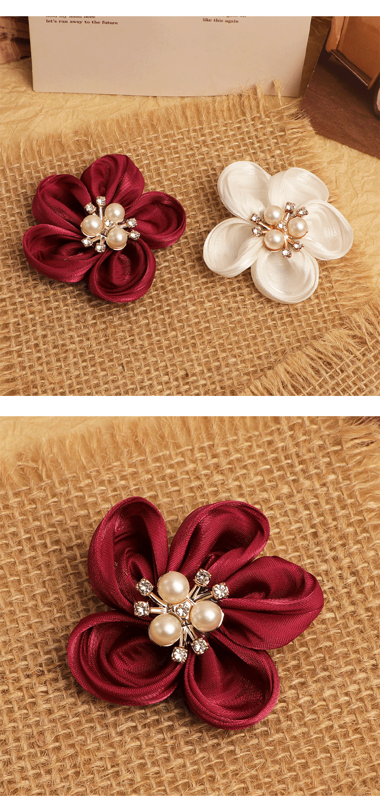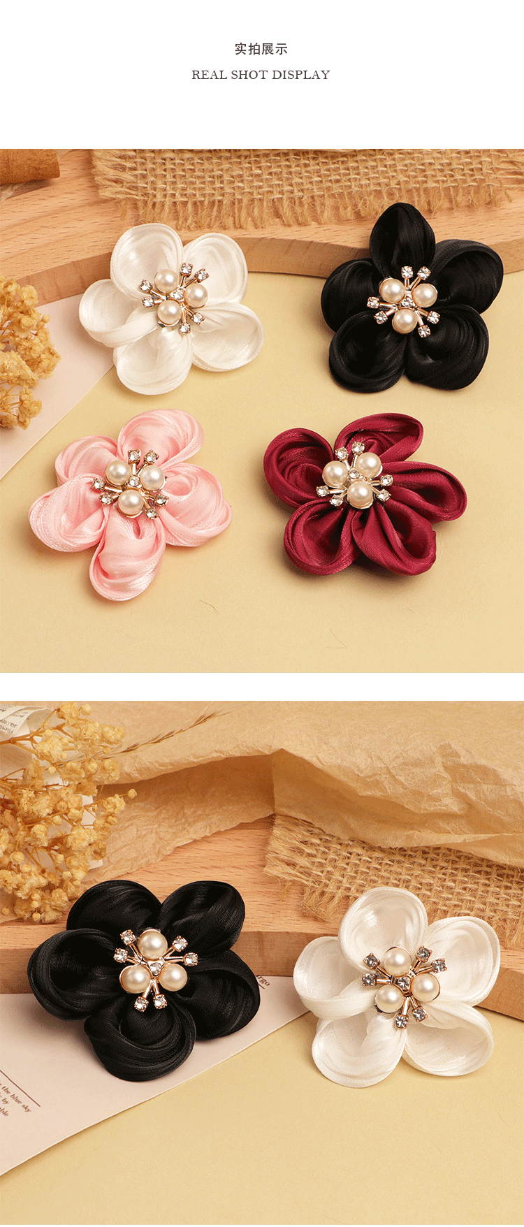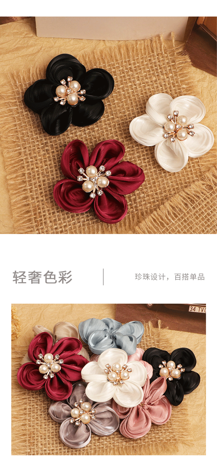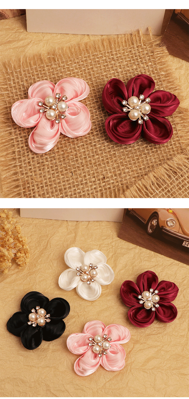 한국의 새로운 5 꽃잎 진주 직물 꽃 수제 DIY 헤어 액세서리 어린이 의류 신발 꽃 반제품 액세서리스토어 가기