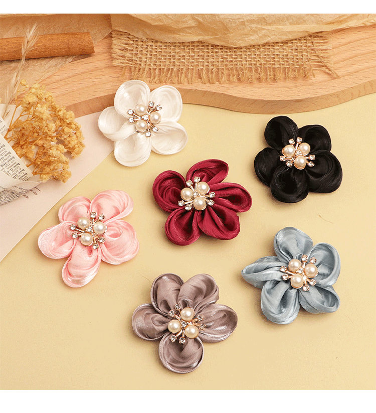 한국의 새로운 5 꽃잎 진주 직물 꽃 수제 DIY 헤어 액세서리 어린이 의류 신발 꽃 반제품 액세서리