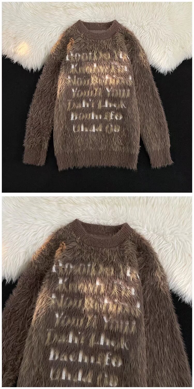 아메리칸 스타일 하이 스트리트 자카드 크루 넥 밍크 양털 스웨터 남자 가을 겨울 게으른 스타일 오버 사이즈 스웨터 커플스토어 가기