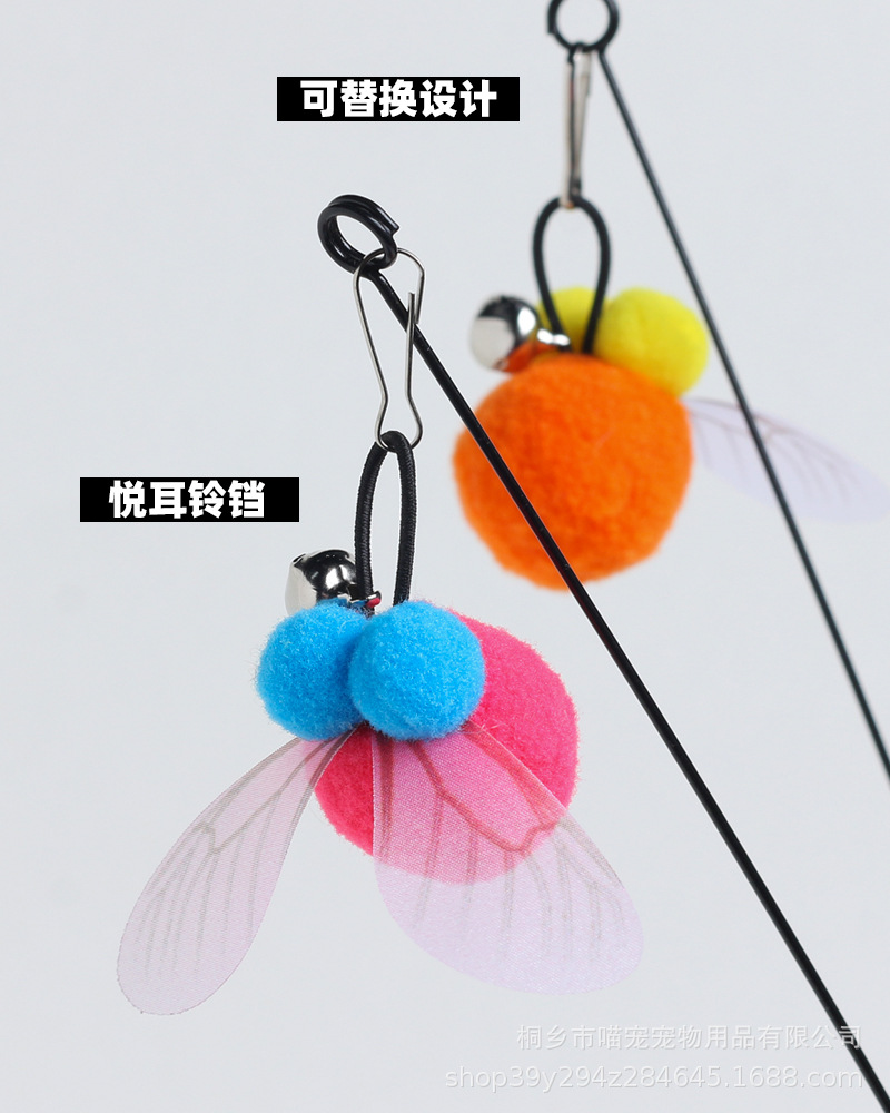 비행 곤충 강철 와이어 고양이 스틱 시뮬레이션 탄성 고양이 장난감 애완 동물 용품 벨 교체 헤드 액세서리 플러시 인터랙티브