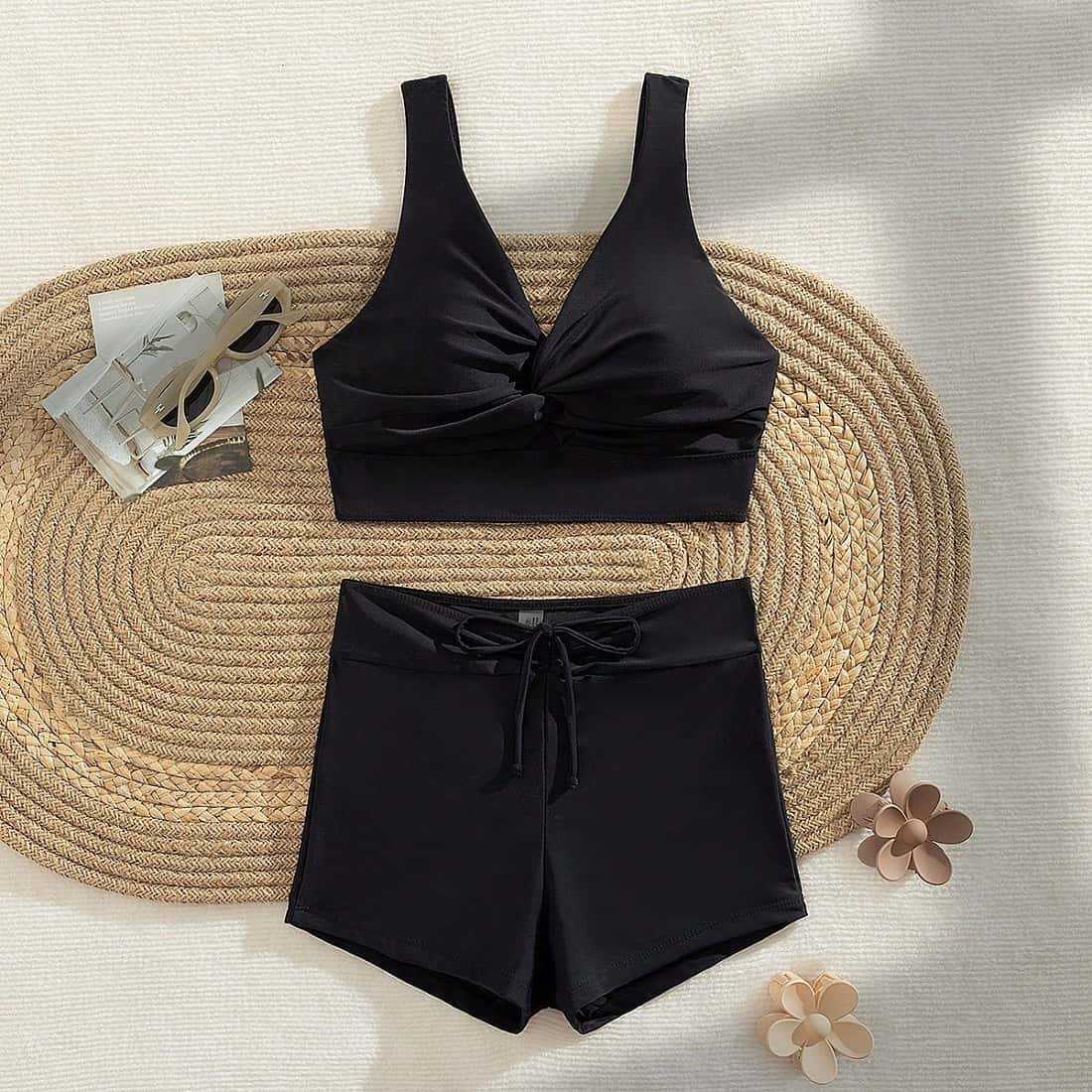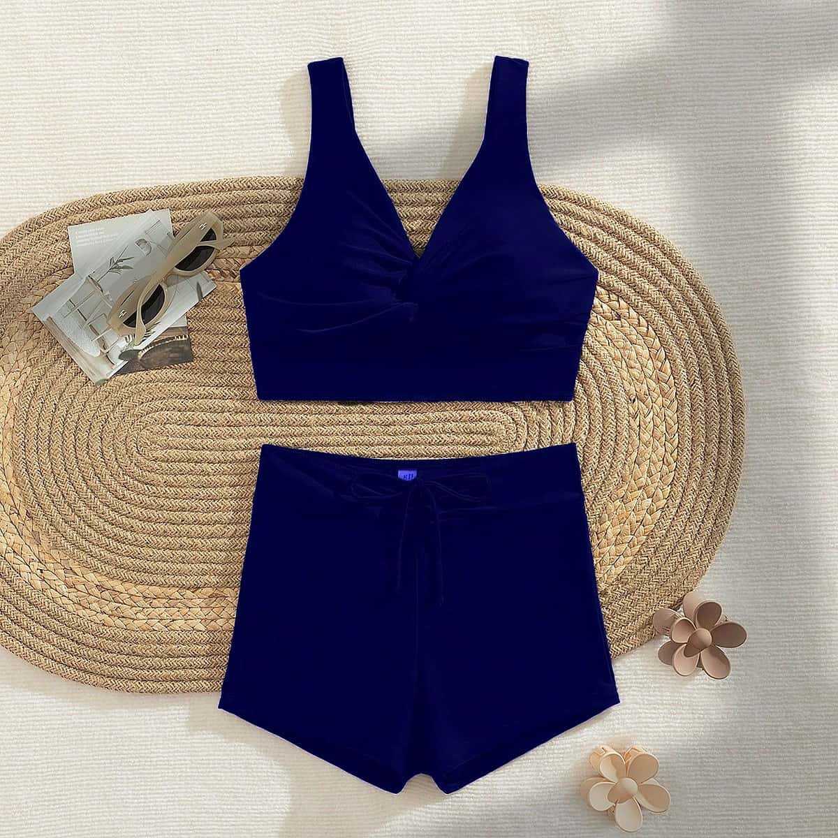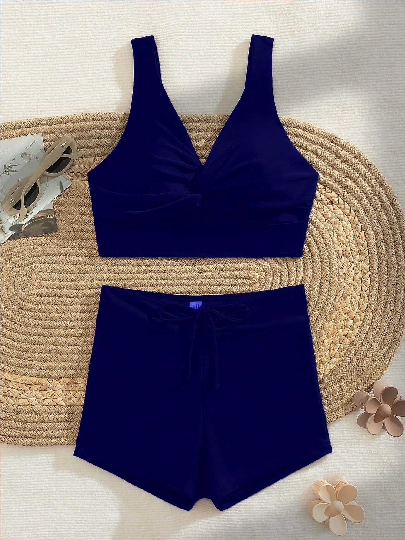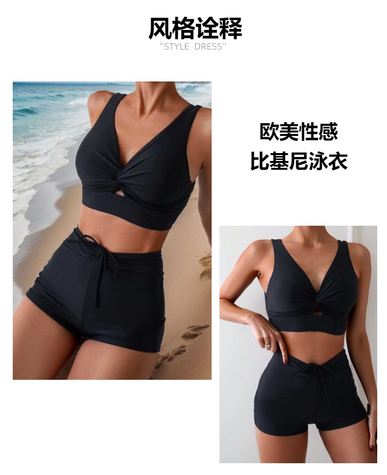 2025 수영복 여성 크로스 보더 뉴 솔리드 컬러 여성 스플릿 수영복 온천 비치 섹시 유럽과 미국 비키니스토어 가기