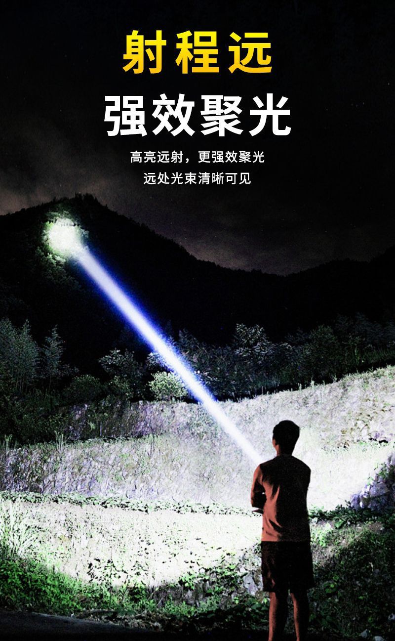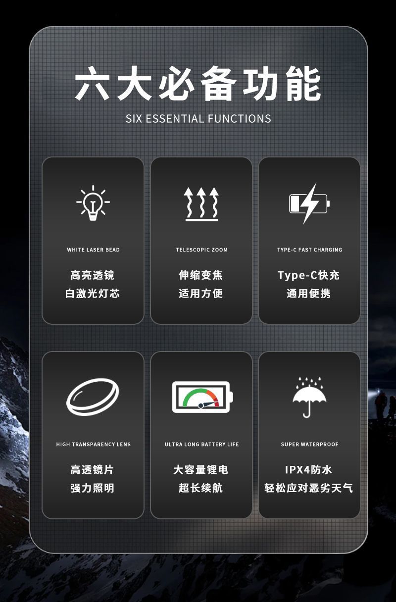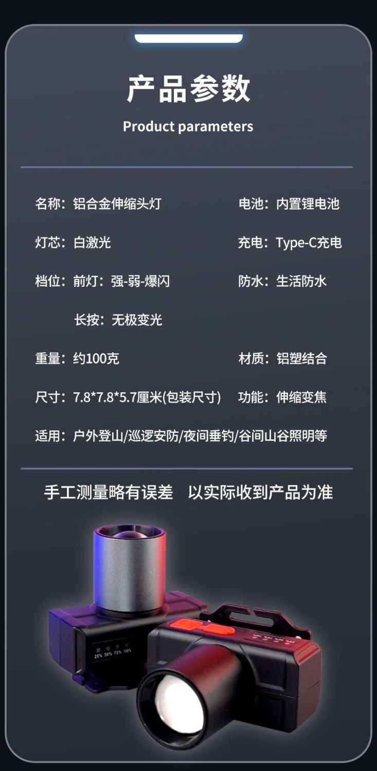 국경 간 새로운 밝은 조명 알루미늄 합금 망원경 줌 장거리 헤드 라이트 화이트 레이저 야외 장수 헤드 라이트