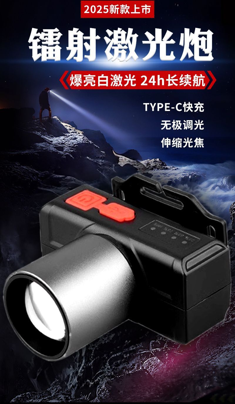 국경 간 새로운 밝은 조명 알루미늄 합금 망원경 줌 장거리 헤드 라이트 화이트 레이저 야외 장수 헤드 라이트스토어 가기