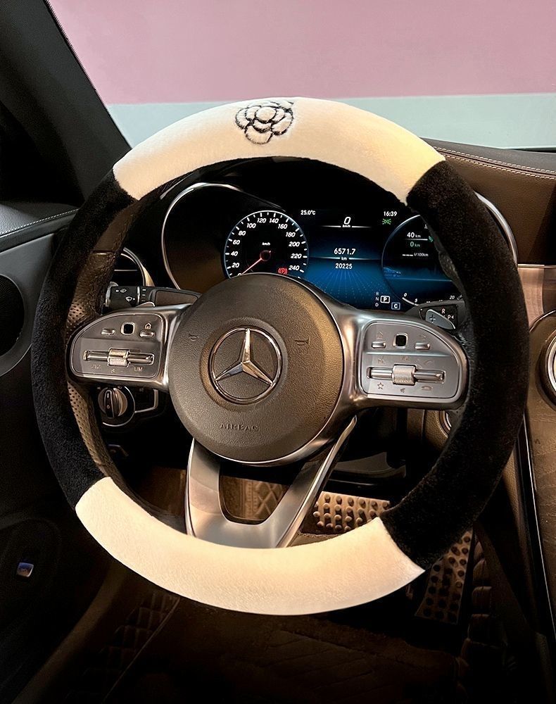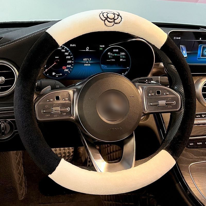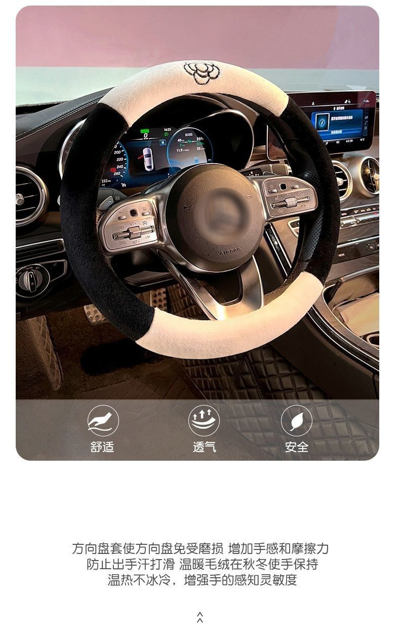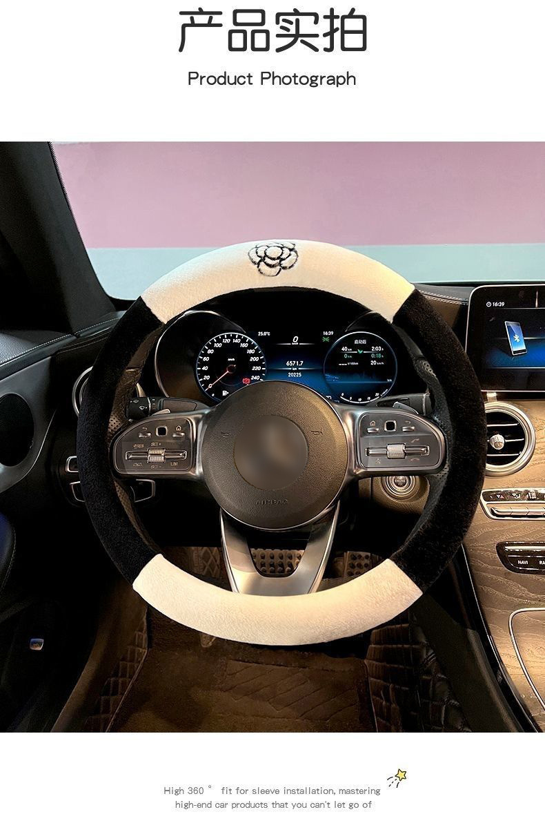 동백 겨울 스티어링 휠 커버 자동차 범용 짧은 플러시 따뜻한 미끄럼 방지 겨울 그물 레드 마오 마오 자동차 핸들 커버스토어 가기