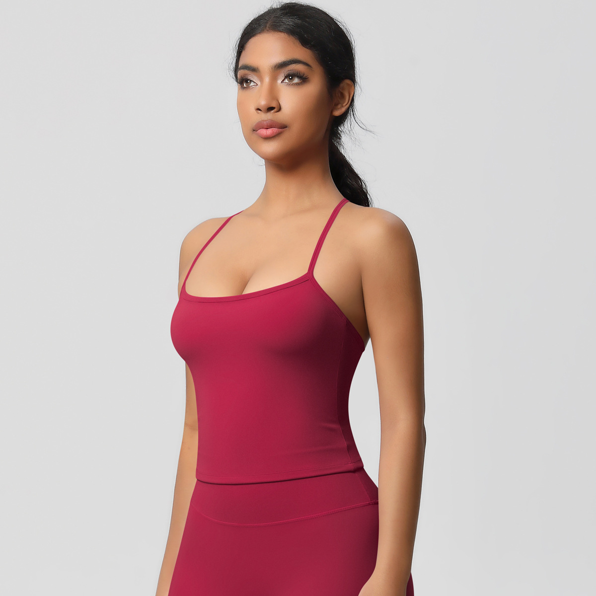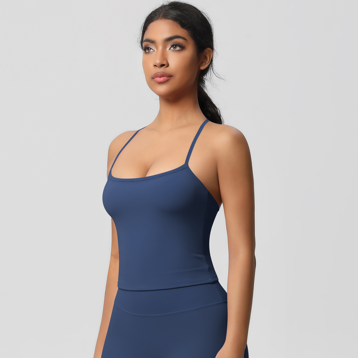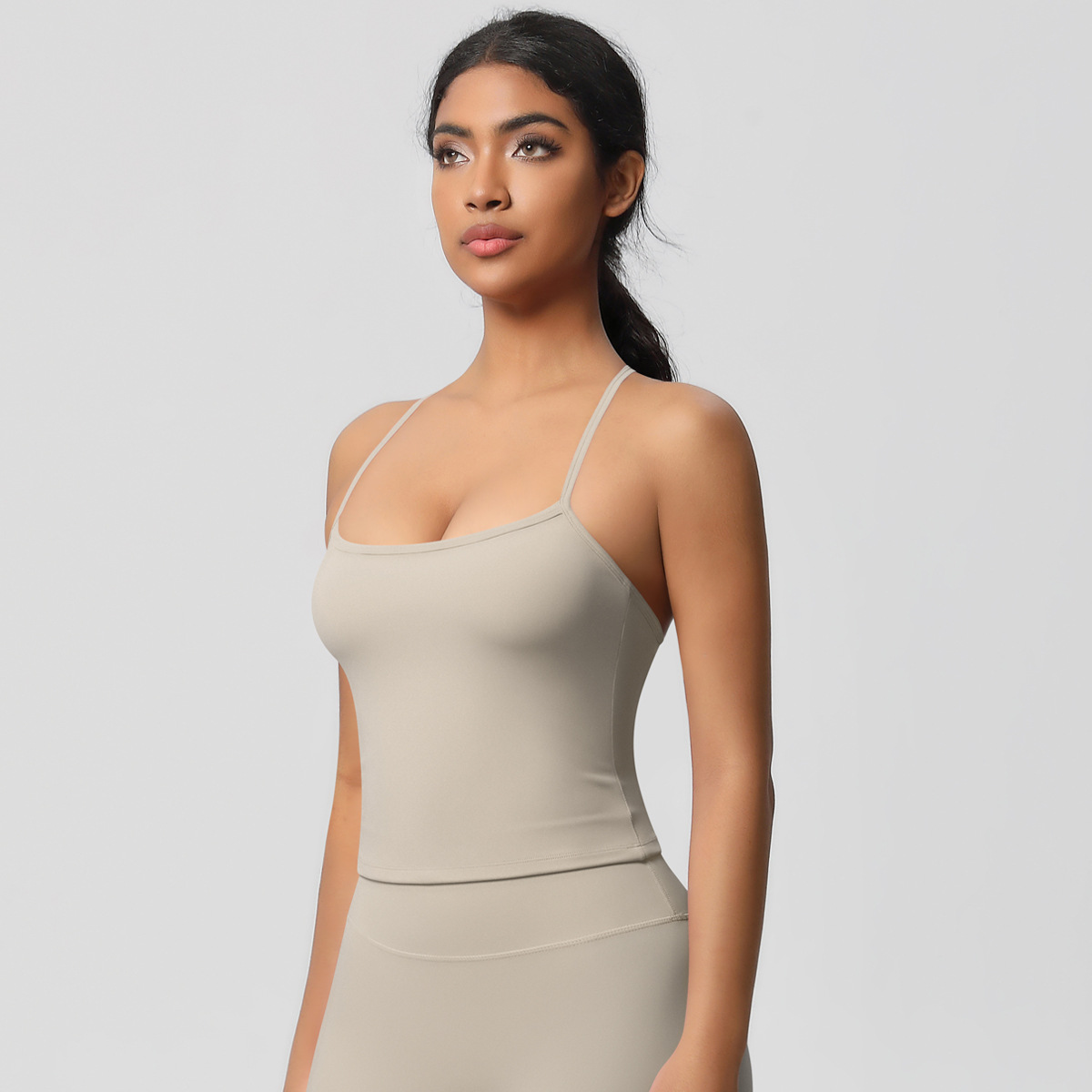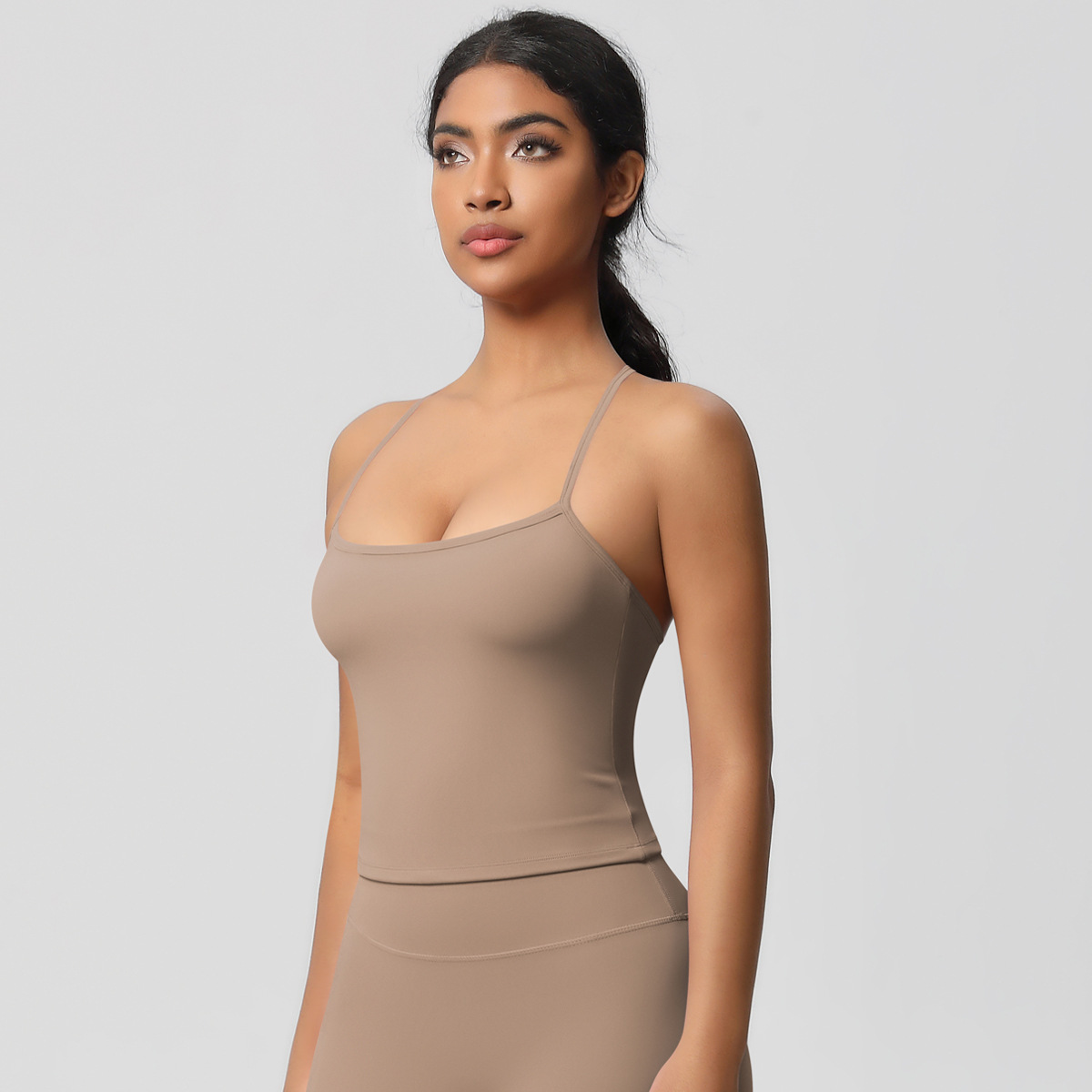 알몸 피부 친화적 인 목 스포츠 속옷 중간 강도 섹시한 얇은 어깨 스트랩 아름다운 뒤로 이동식 가슴 패드 요가 조끼스토어 가기