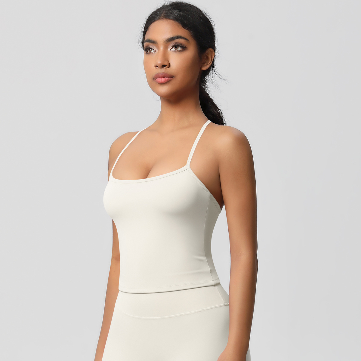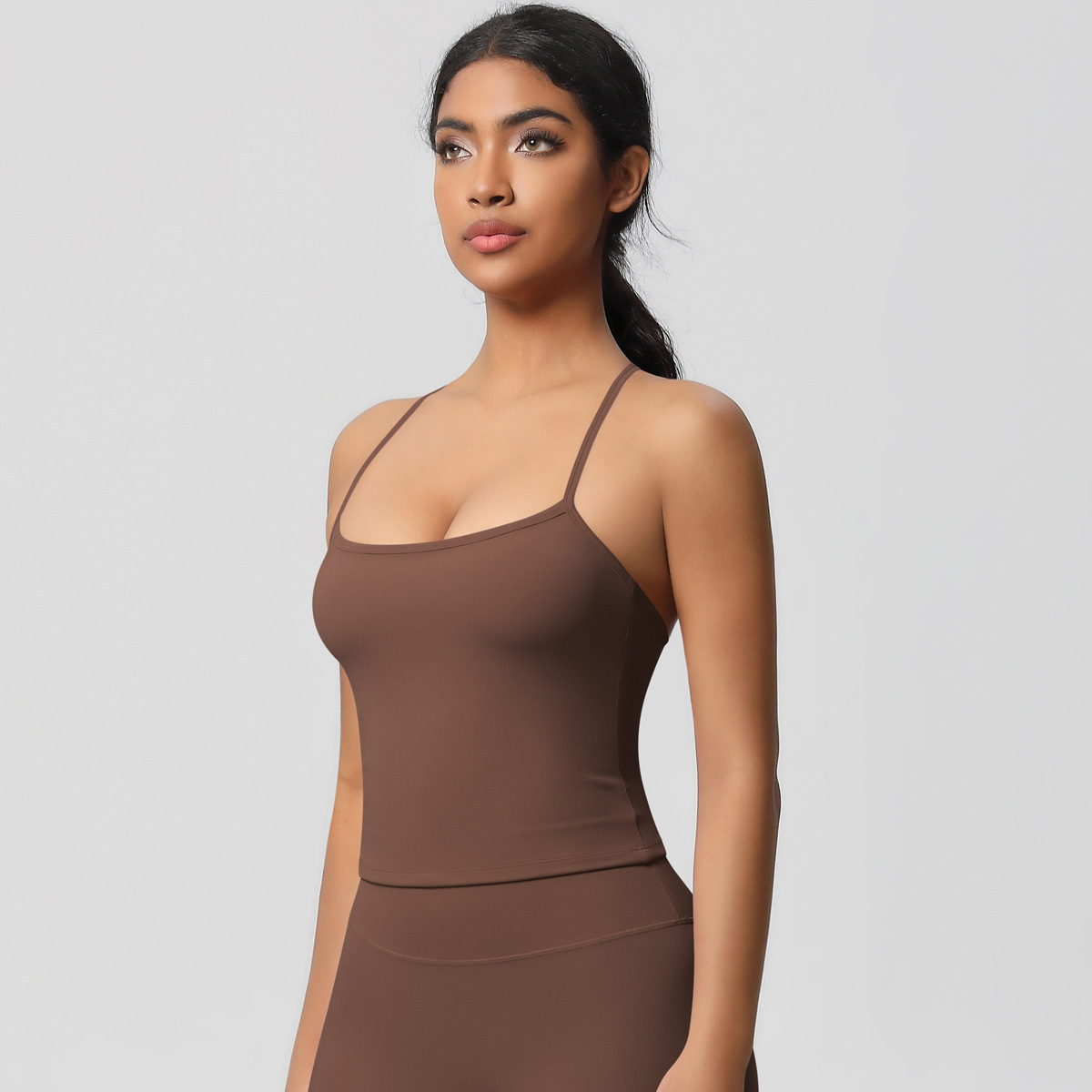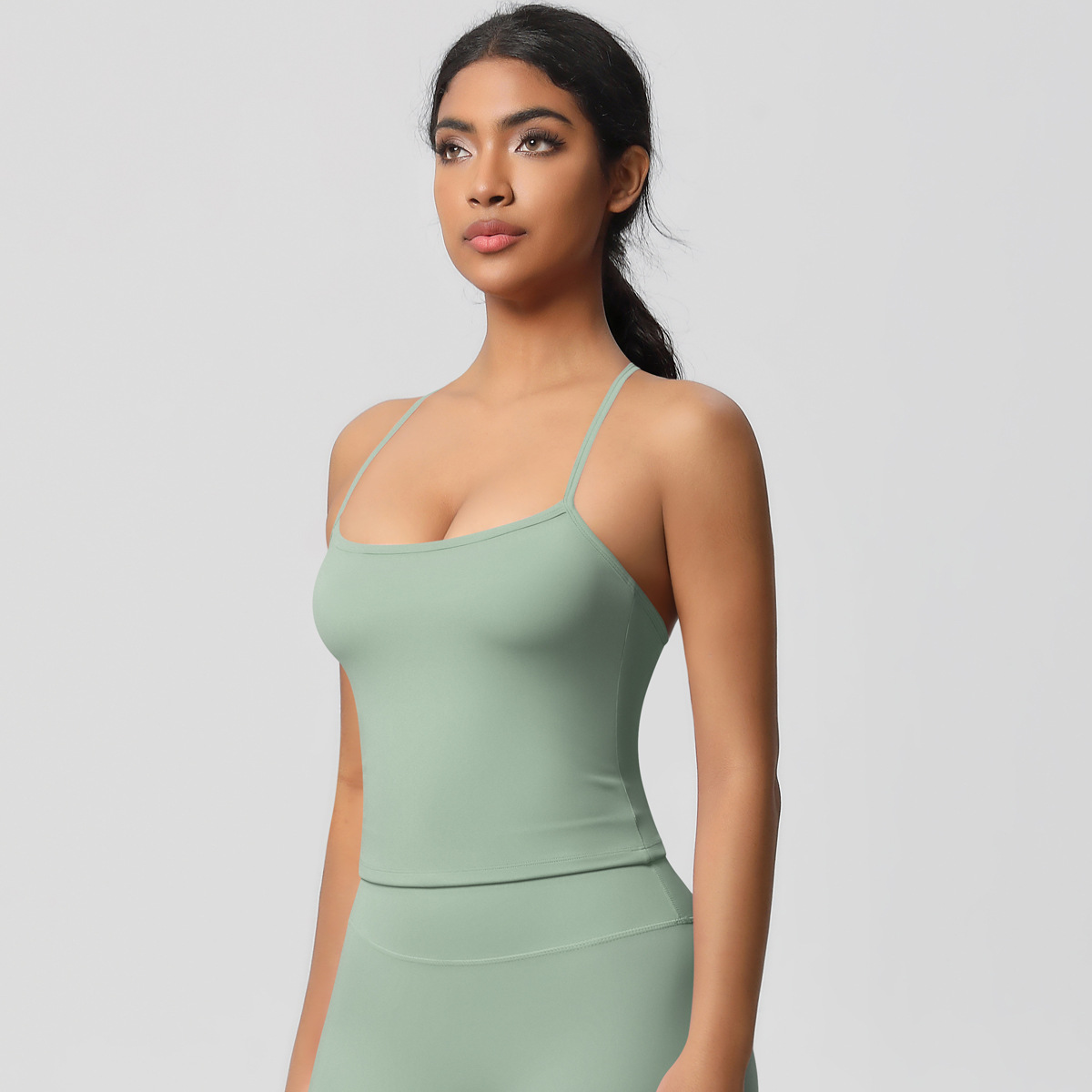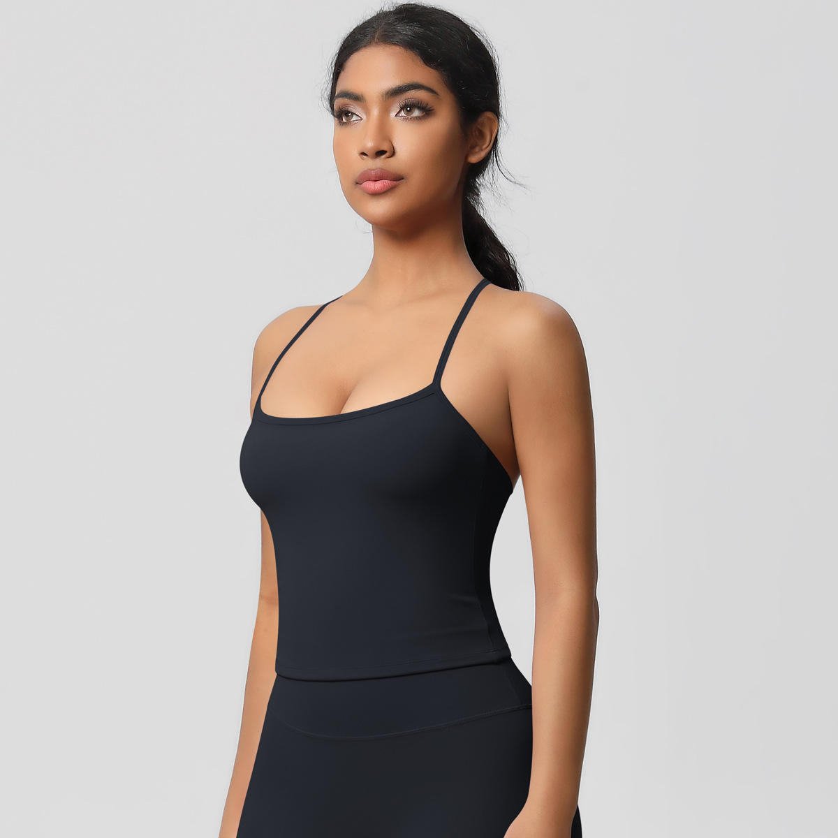 알몸 피부 친화적 인 목 스포츠 속옷 중간 강도 섹시한 얇은 어깨 스트랩 아름다운 뒤로 이동식 가슴 패드 요가 조끼스토어 가기