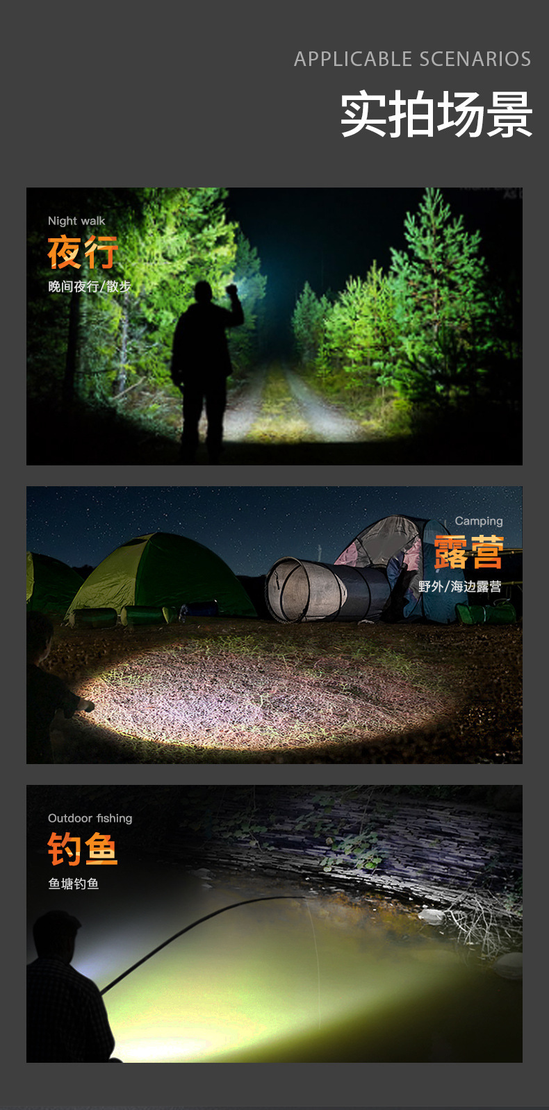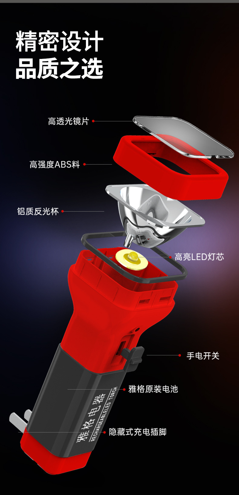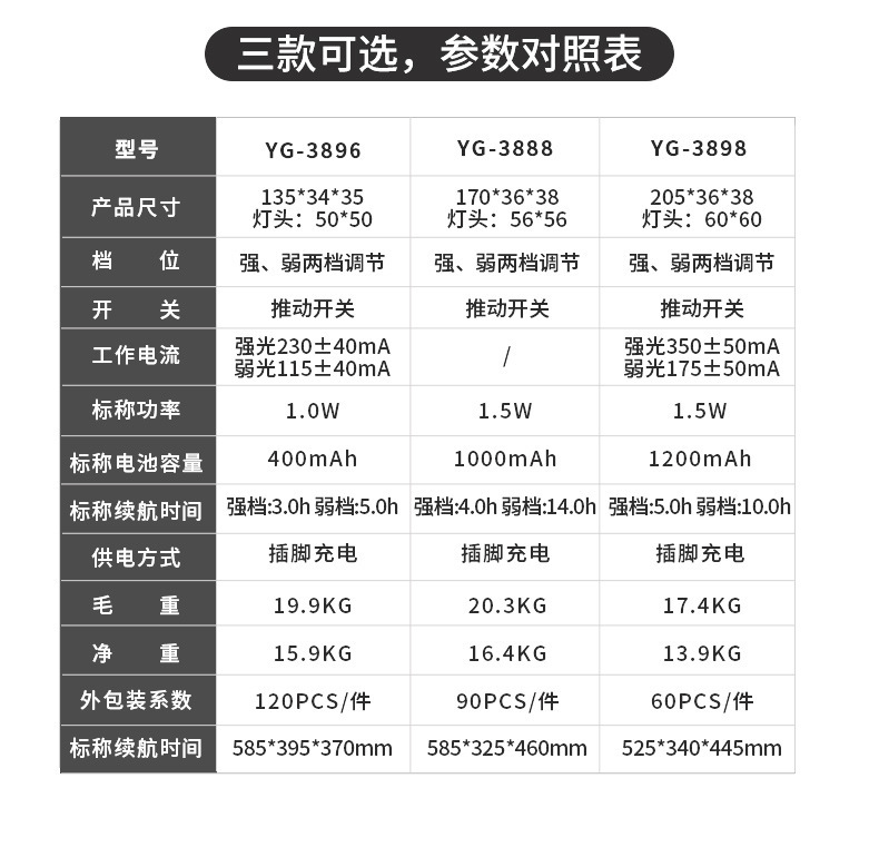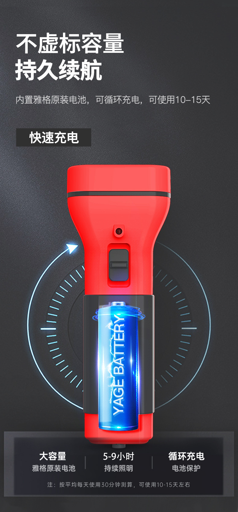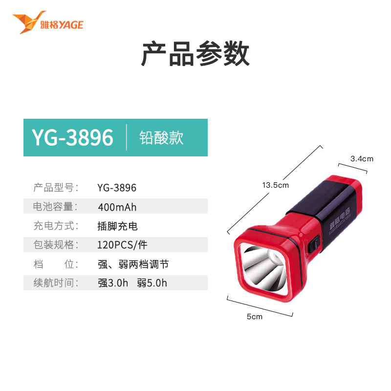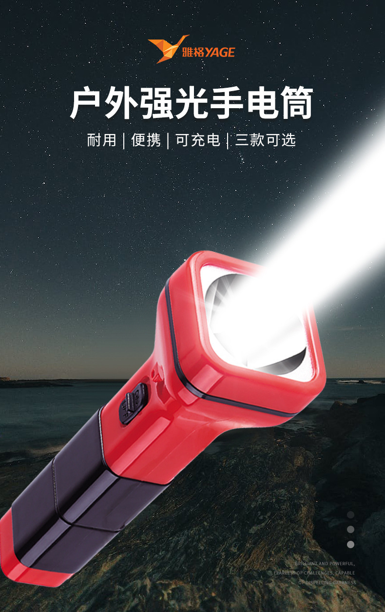 야거 정품 LED 손전등, 강한 빛, 충전식, 내구성, 휴대용, 가정용, 노인 전용, 야외 비상등
