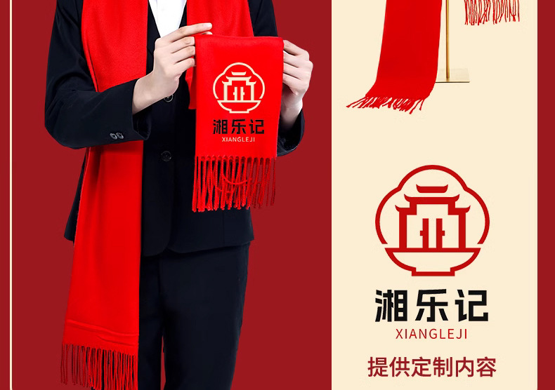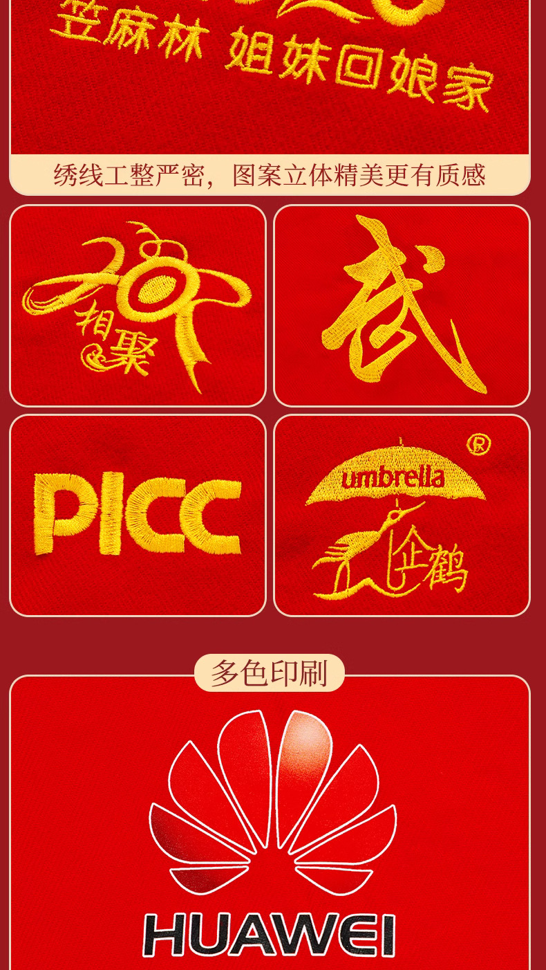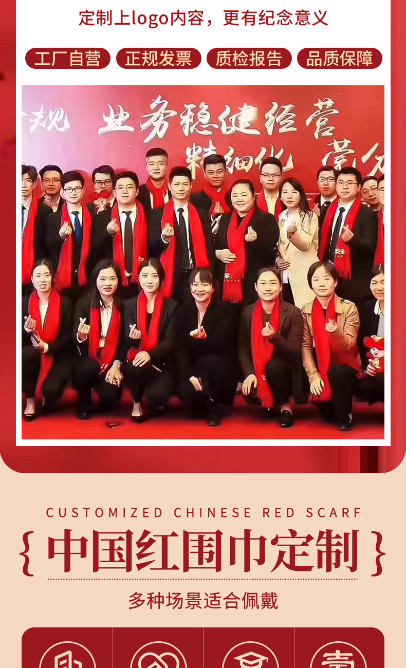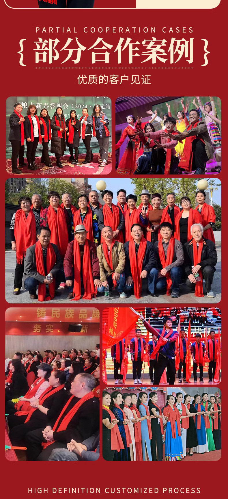 연례 회의 빨간 스카프 맞춤 인쇄 로고 중국 빨간 자수 스카프 기업 개회식 학생 파티스토어 가기