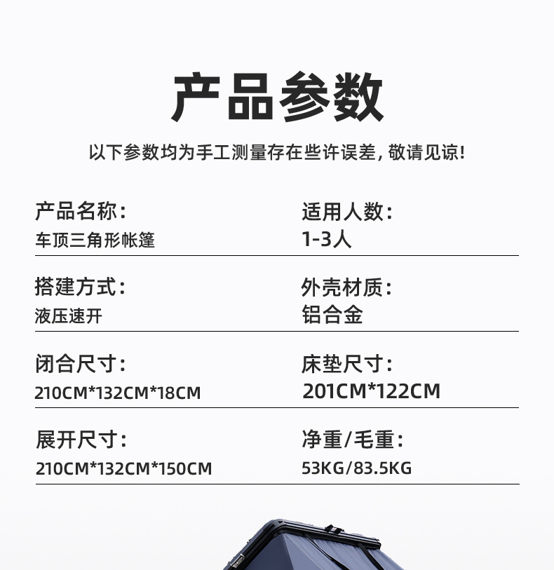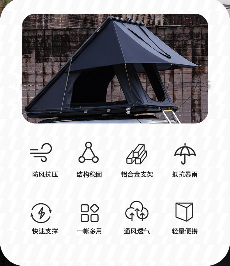 알루미늄 합금 삼각형 지붕 텐트 야외 캠핑 SUV 하드 코어 오프로드 자율 주행 속도 운전 자동차 텐트스토어 가기