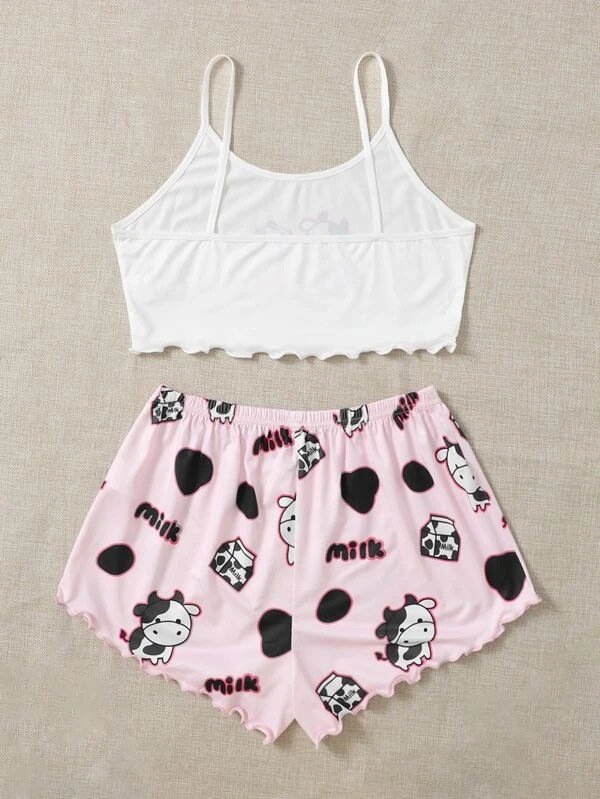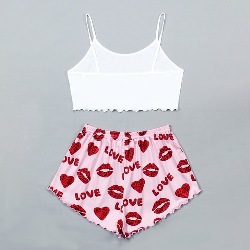 다른 패턴의 국경 간 재고 니트 조끼 멜빵은 편안한 얇은 여성 가정 잠옷을 세트 인쇄했습니다.스토어 가기