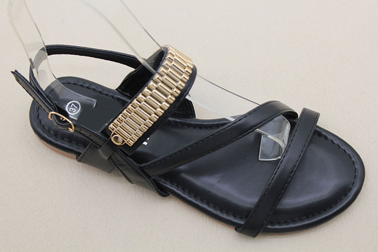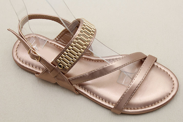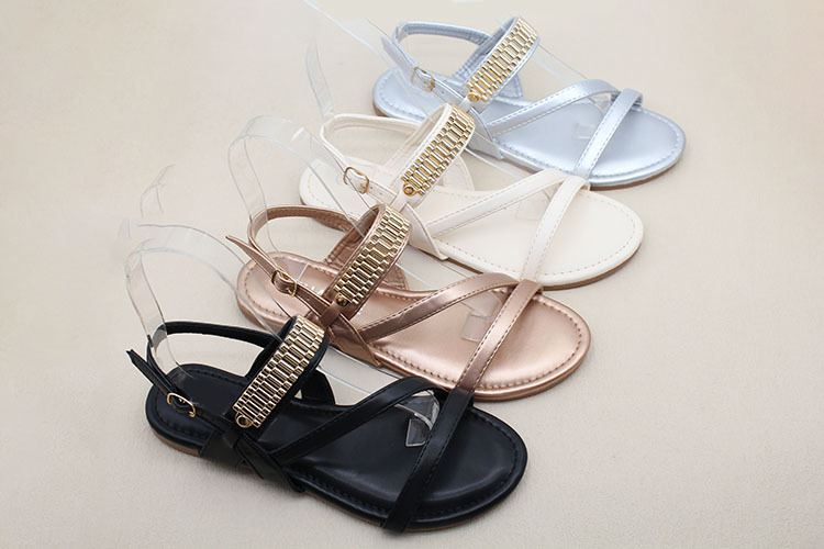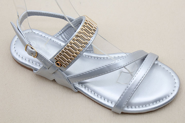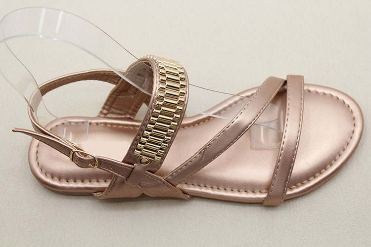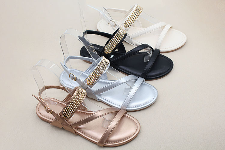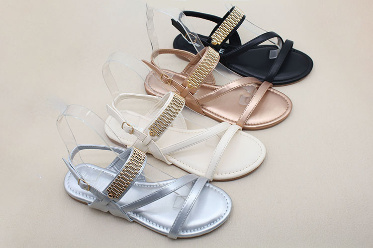 남미 대외 무역 국경 간 재고 여성 패션 금속 액세서리 소프트 하단 미끄럼 방지 편안한 캐주얼 샌들