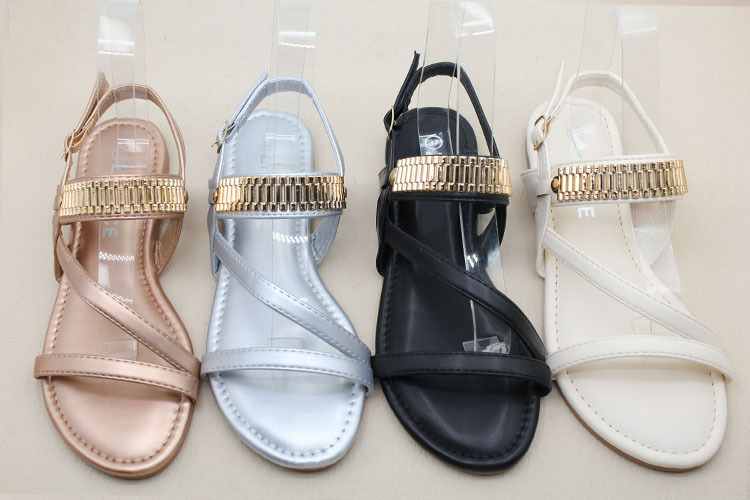 남미 대외 무역 국경 간 재고 여성 패션 금속 액세서리 소프트 하단 미끄럼 방지 편안한 캐주얼 샌들스토어 가기