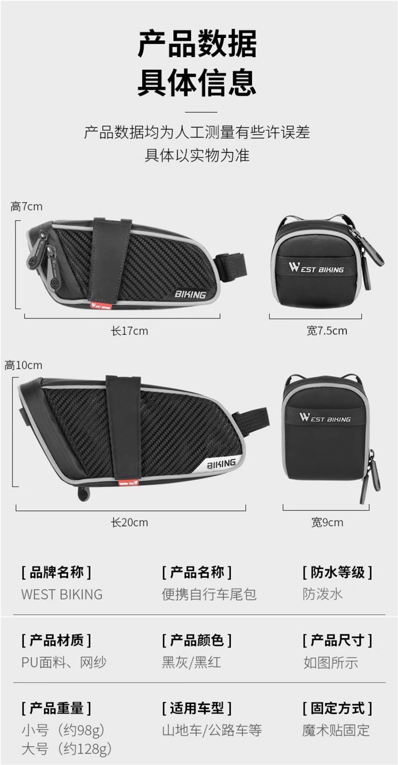 웨스트 라이더 자전거 리어 백 대용량 안장 가방 고속도로 산악 자전거 시트 튜브 가방 승마 장비 액세서리스토어 가기