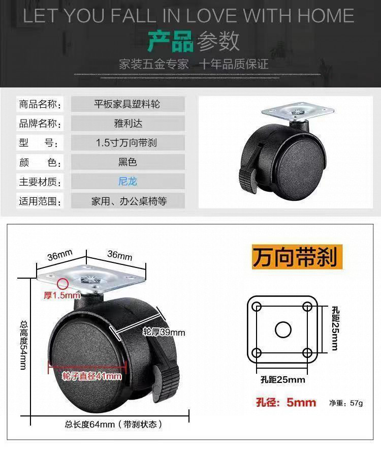 1.5 인치 2 인치 플랫 캐스터 풀리 브레이크 휠 티 테이블 풀리 컴퓨터 테이블 캐스터 휠 대외 무역 공장 도매스토어 가기