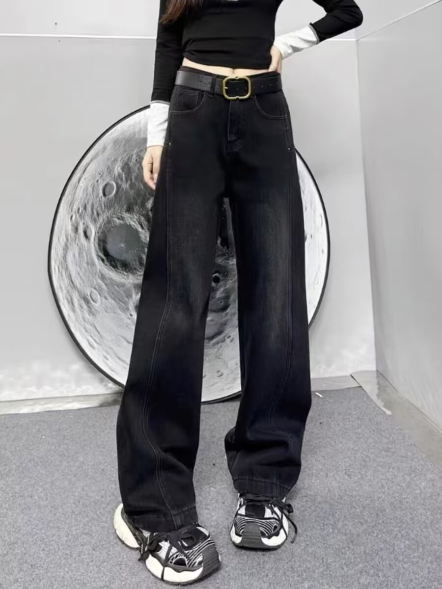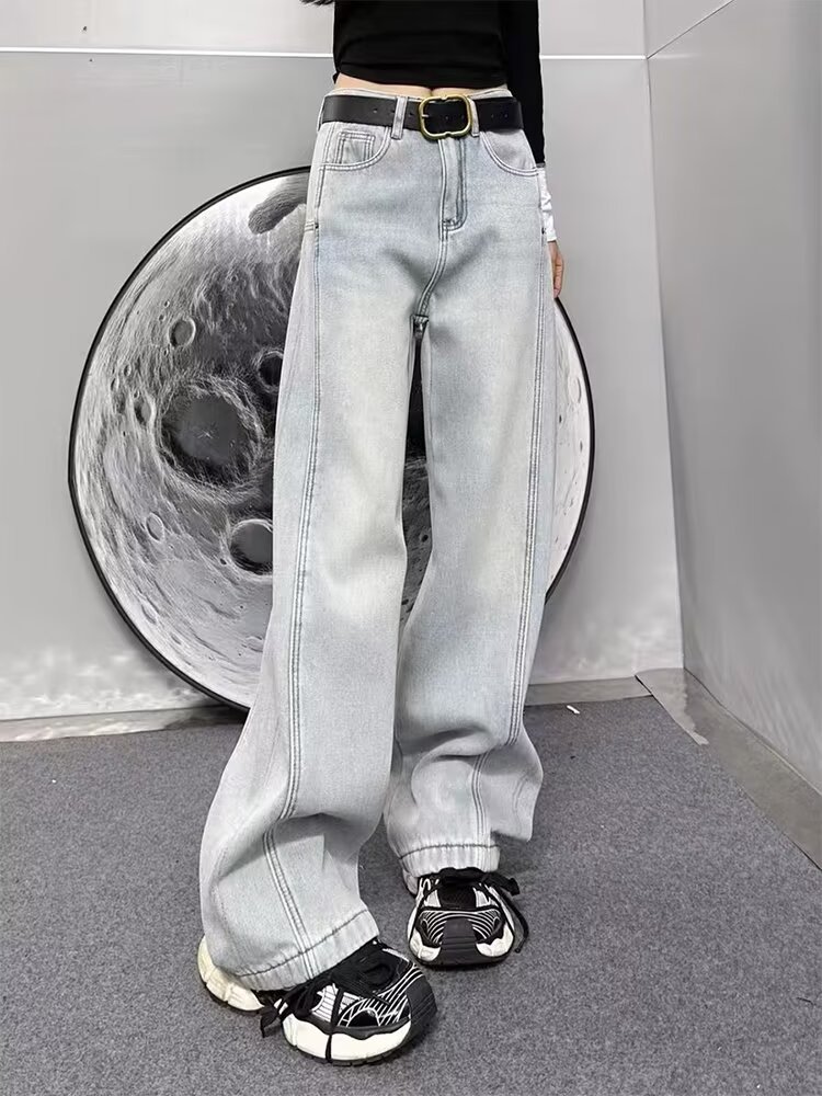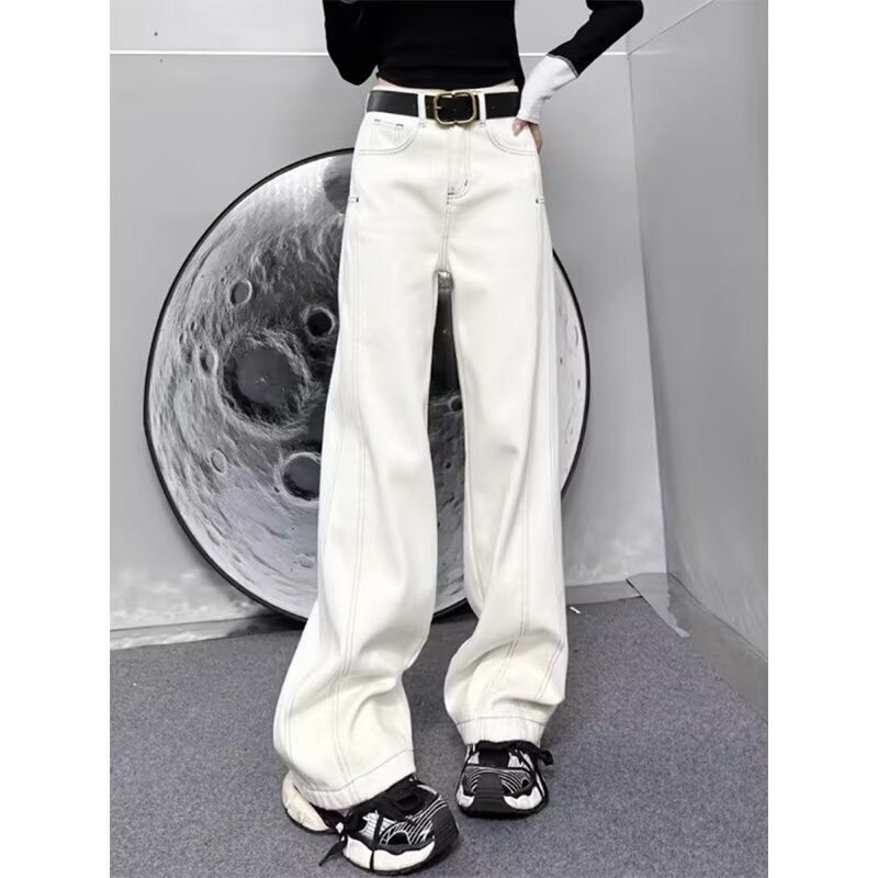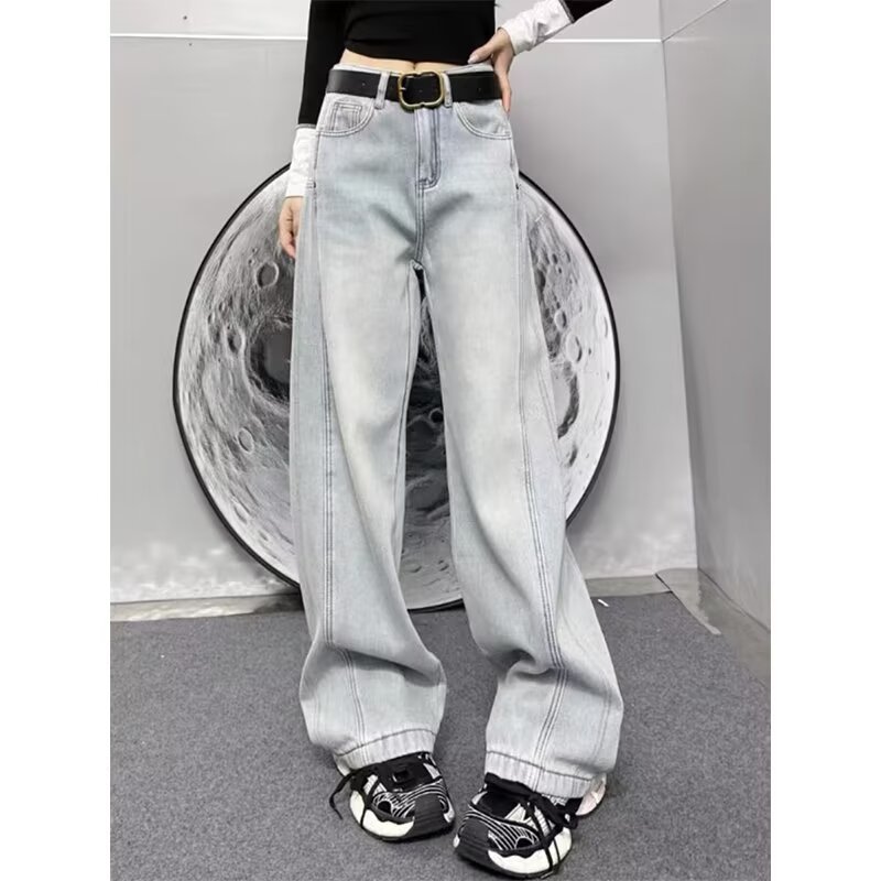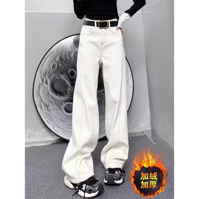 플러스 사이즈 스트레이트 청바지 여성의 2024 가을 겨울 통통녀 배 모양의 몸 느슨한 높은 허리 슬리밍 넓은 다리 바지스토어 가기