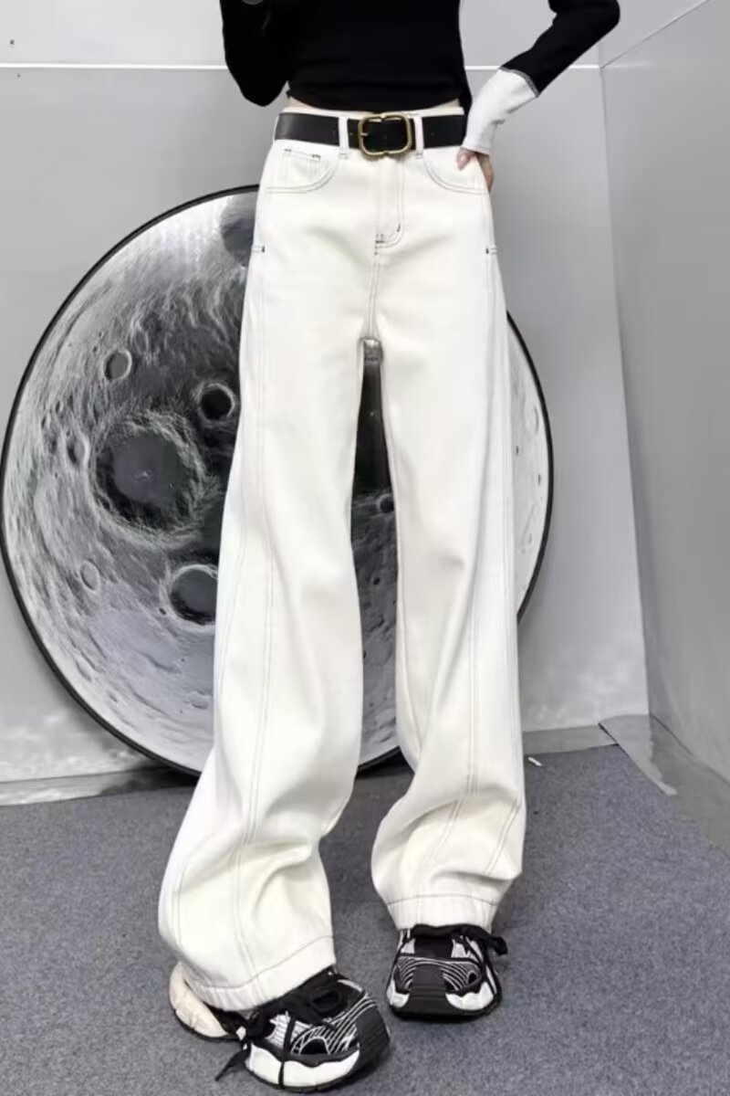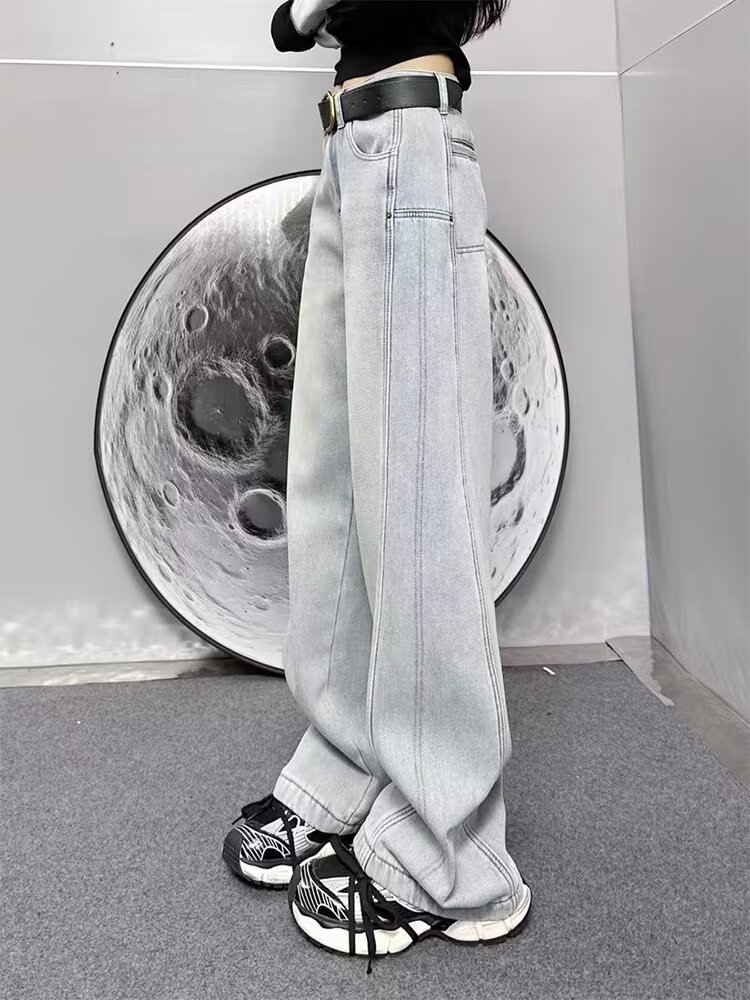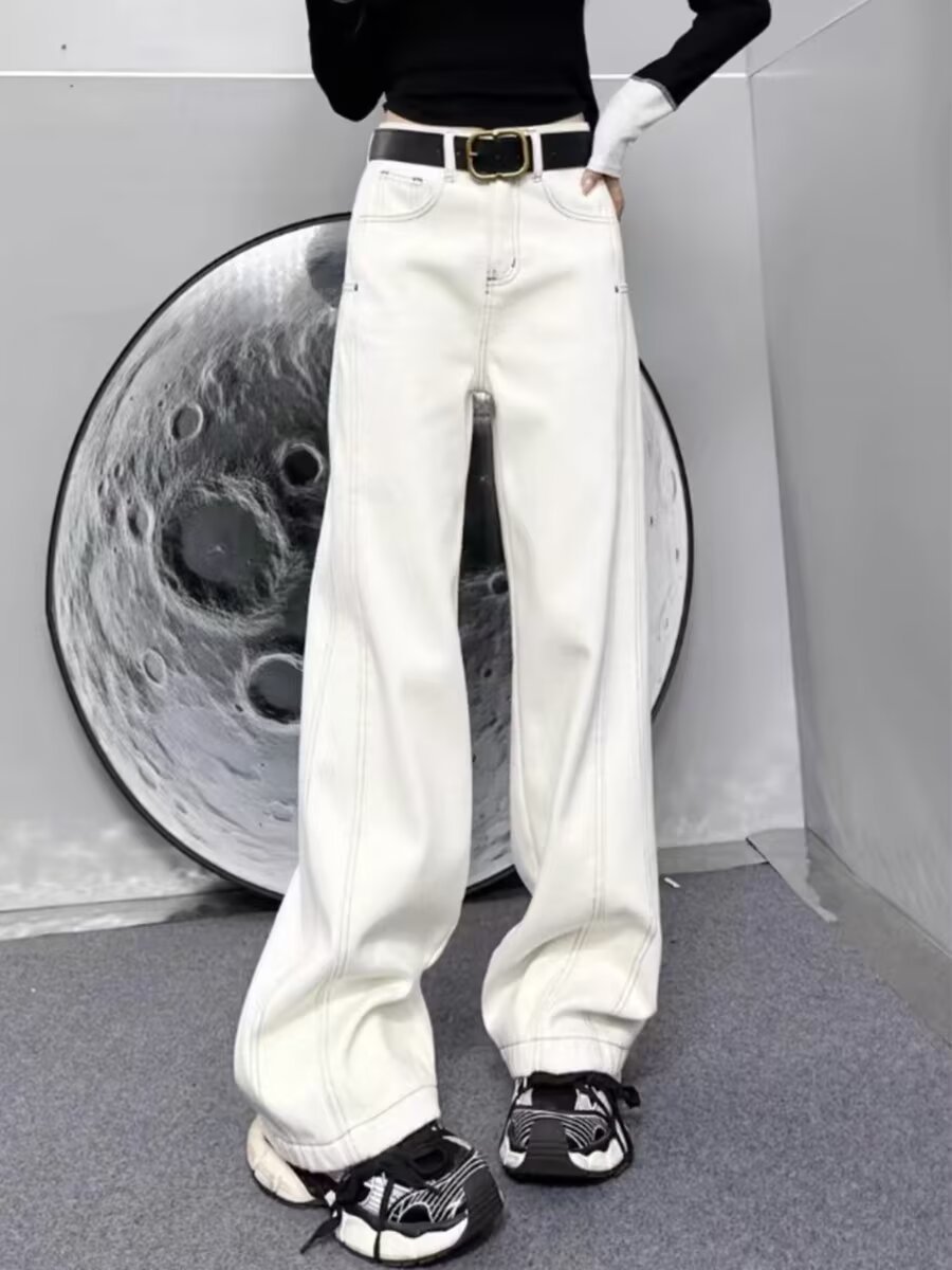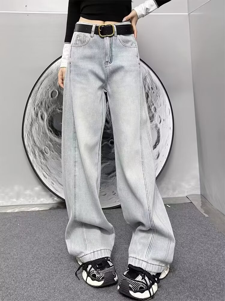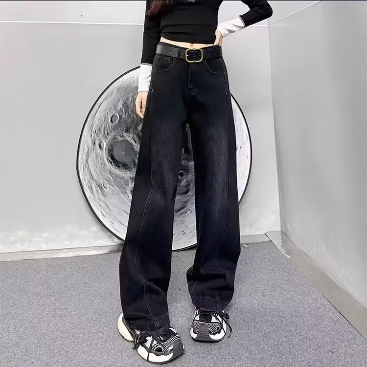 플러스 사이즈 스트레이트 청바지 여성의 2024 가을 겨울 통통녀 배 모양의 몸 느슨한 높은 허리 슬리밍 넓은 다리 바지스토어 가기