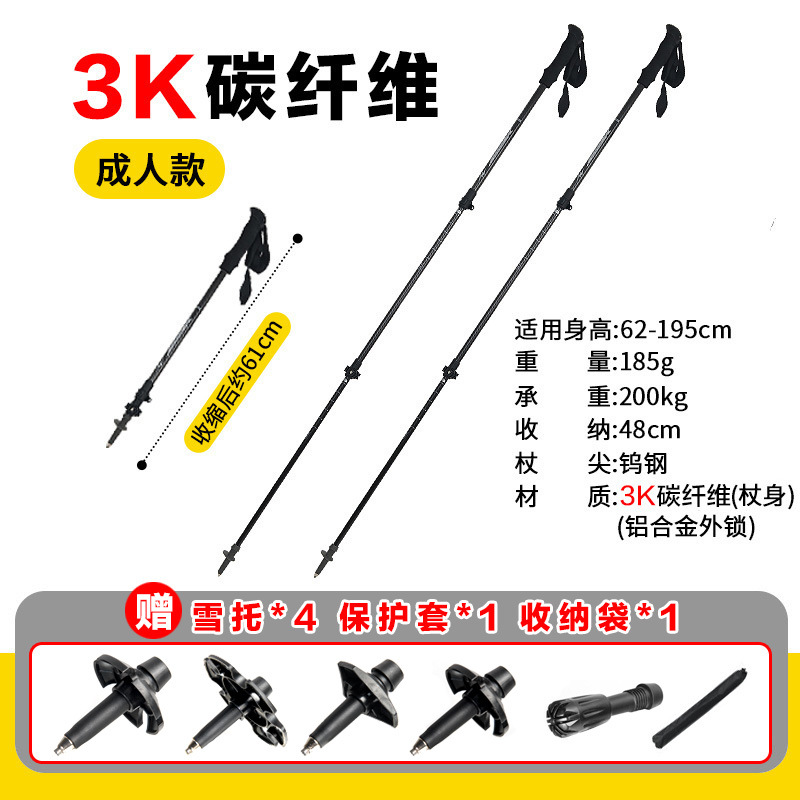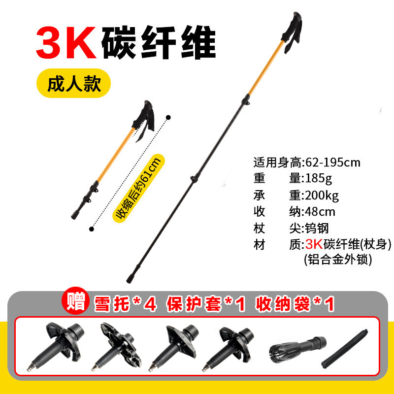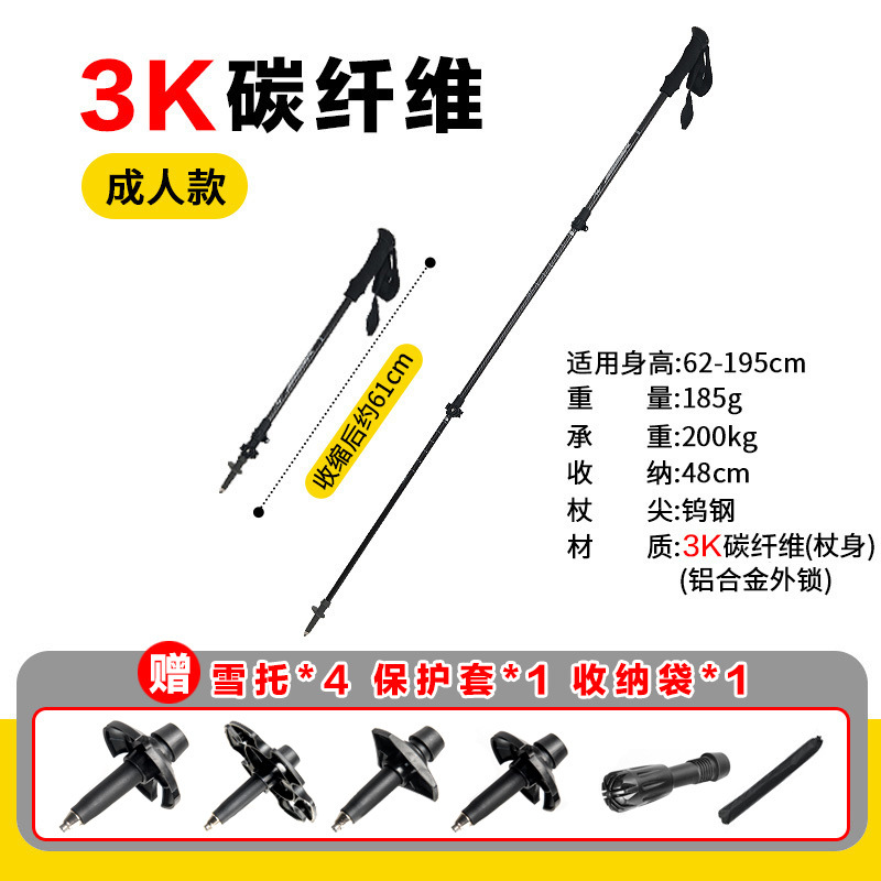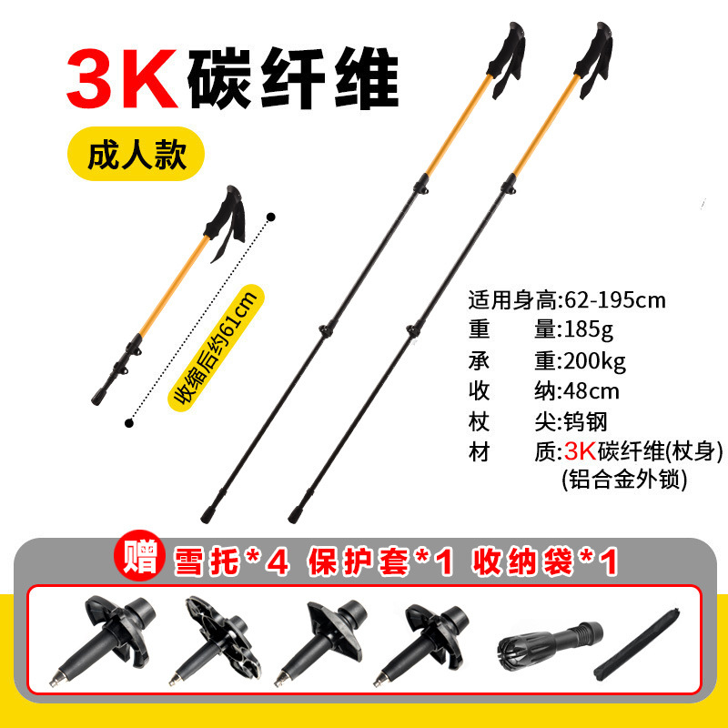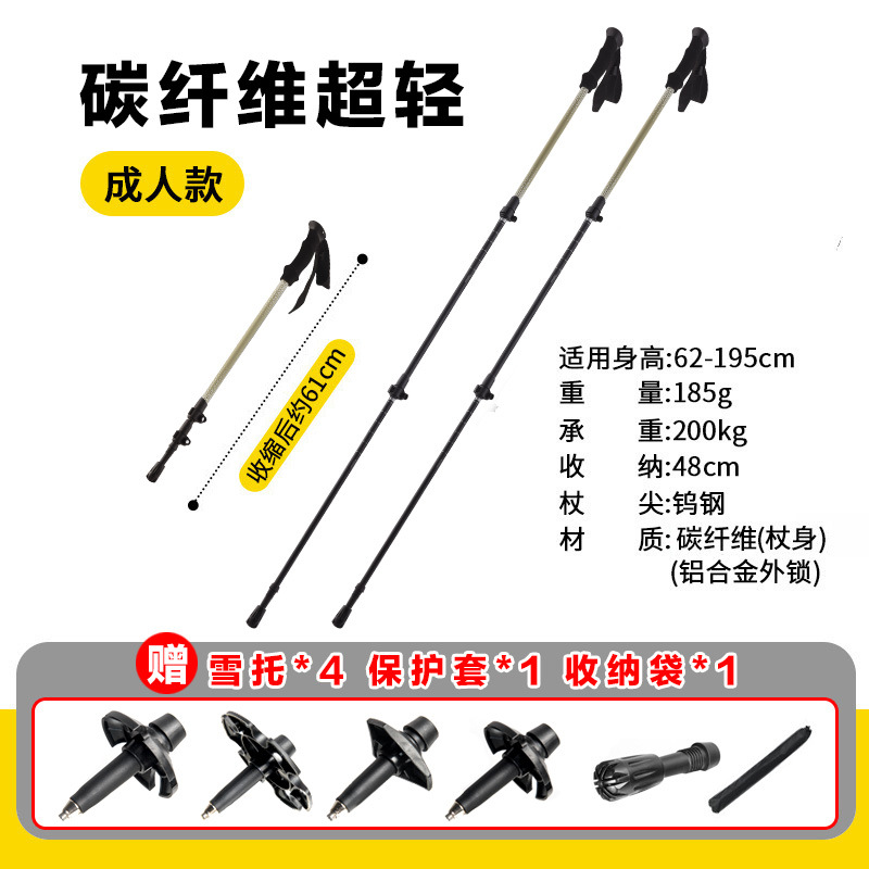 공장 직접 공급 탄소 섬유 초경량 텔레스코픽 트레킹 폴, 경량 휴대용 야외 등산 및 하이킹 미끄럼 방지 스틱스토어 가기
